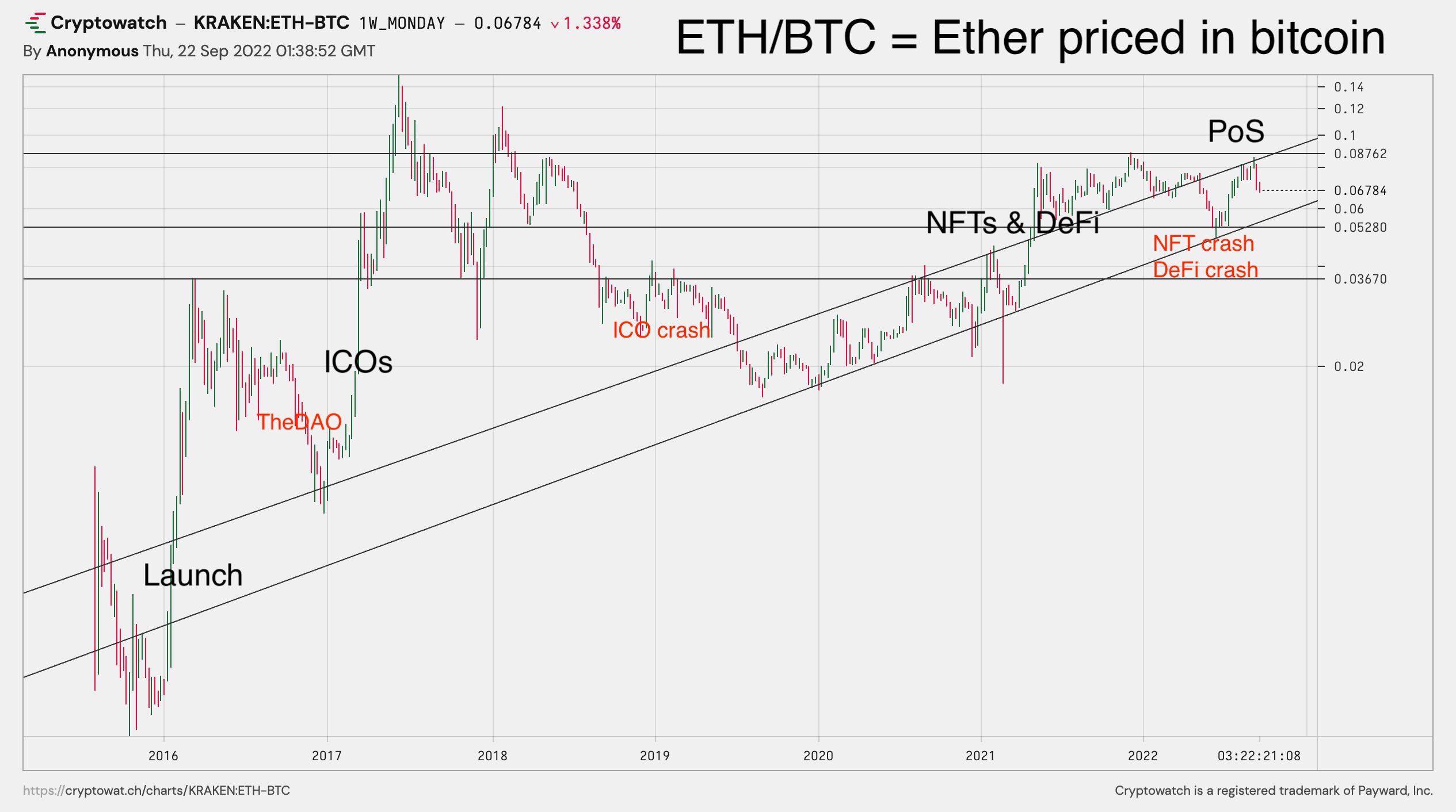 “I expect ETH/BTC to break down violently at some point,” he said, adding:
