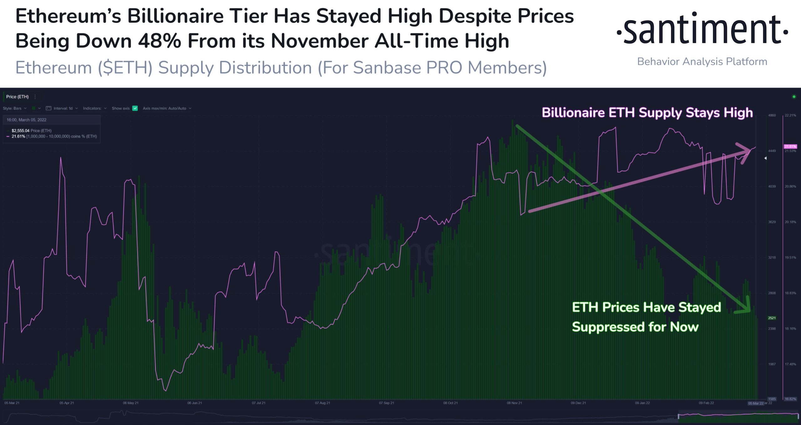 Wolf’s bearish outlook for Ether came despite a recent uptick in ETH’s accumulation by its richest investors.