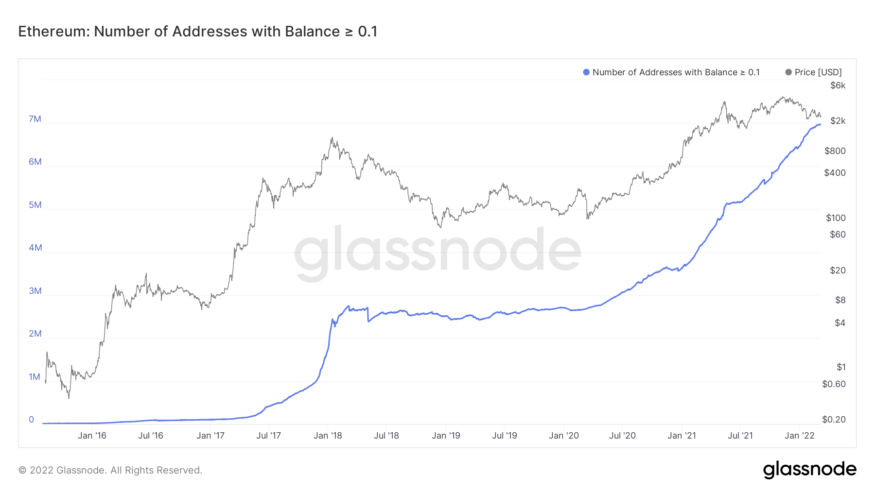 Retail traders also entered the Ethereum market during the recent Ether price correction, according to data from Glassnode. For instance, the number of Ethereum addresses that hold at least 0.1 ETH reached an all-time high of 6.972 million on March 7. Similarly, addresses with a minimum balance of 0.01 ETH also climbed to a record high of 21.8 million.