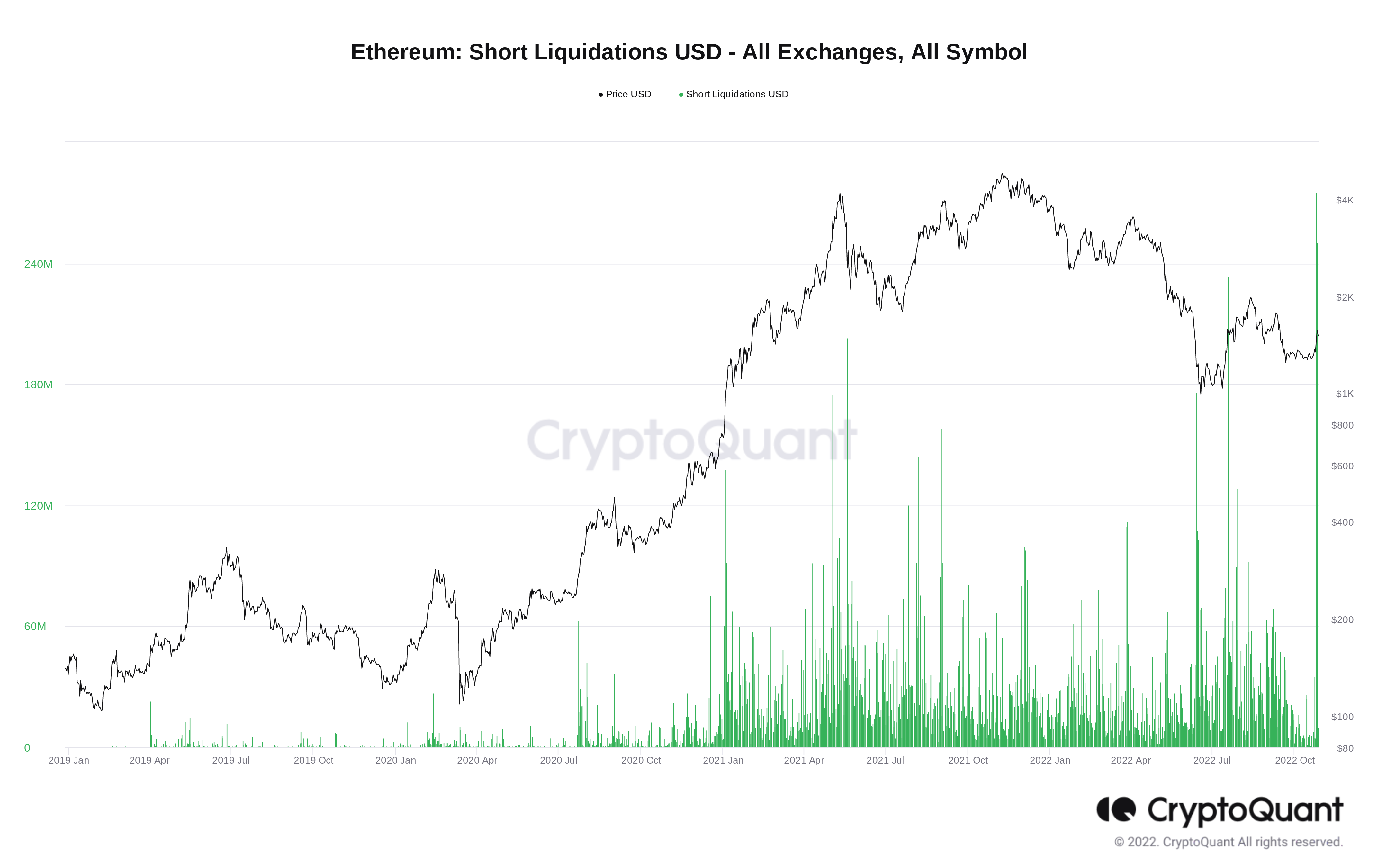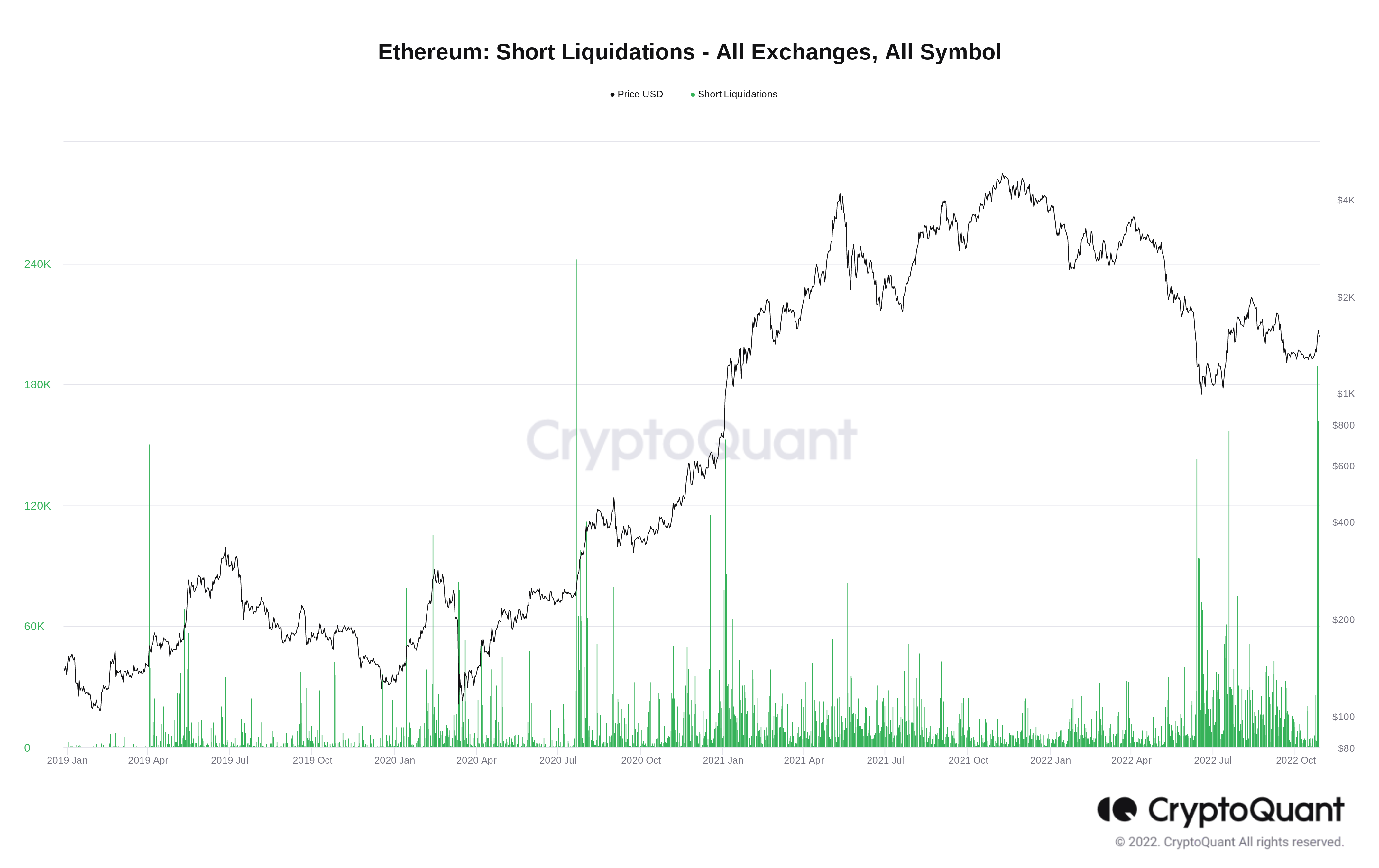 Data from on-chain analytics platform CryptoQuant confirmed that United States dollar-denominated short liquidations hit a new all-time high on Oct. 25.