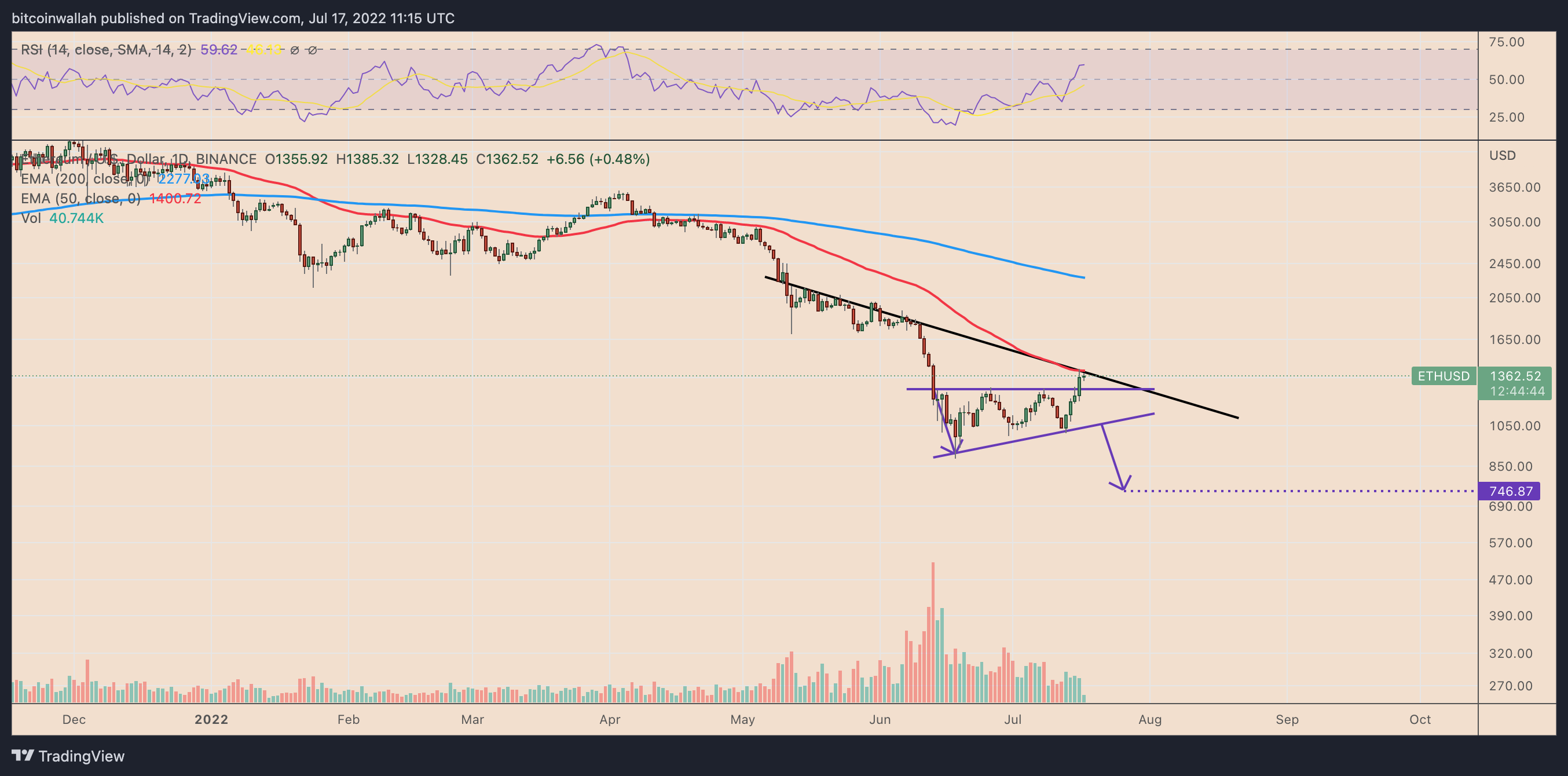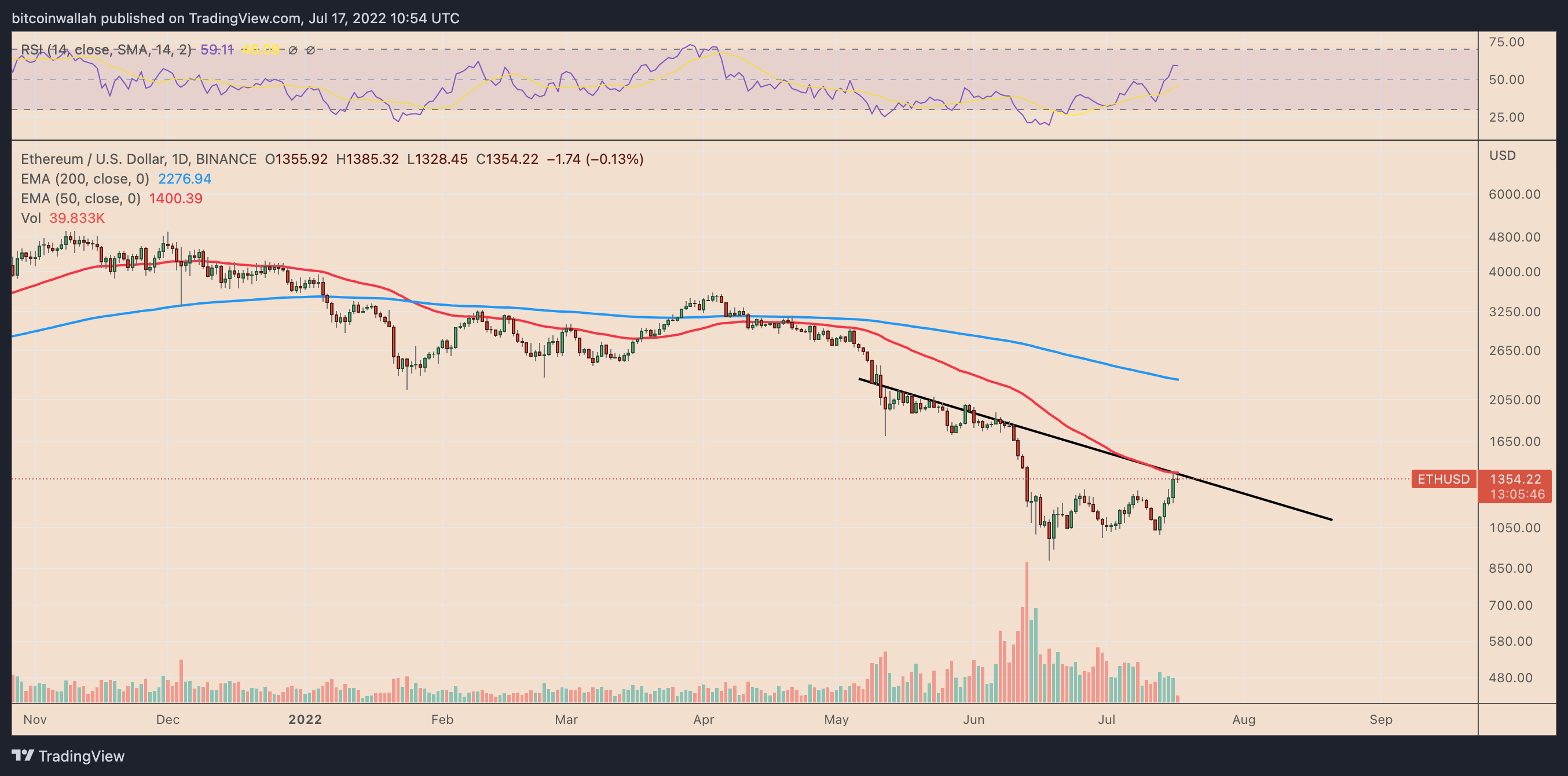 Previously, Ether rallied by over 40% from $1,000 on July 13 to over $1,400 on July 16. The jump appeared partly due to euphoria surrounding “the Merge” slated for September.