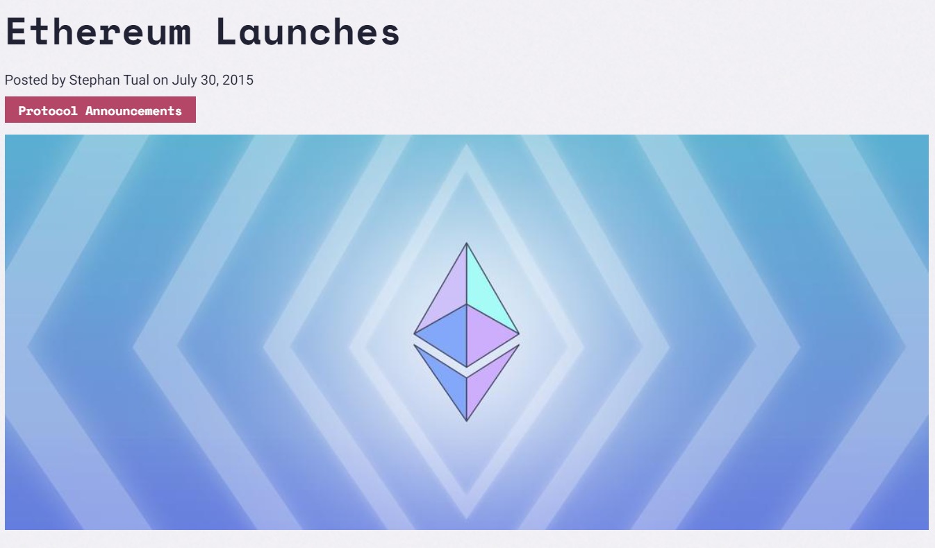 On July 30, 2015, former Ethereum Foundation CCO Stephan Tual penned a blog post, officially announcing that the network had been rolled out.