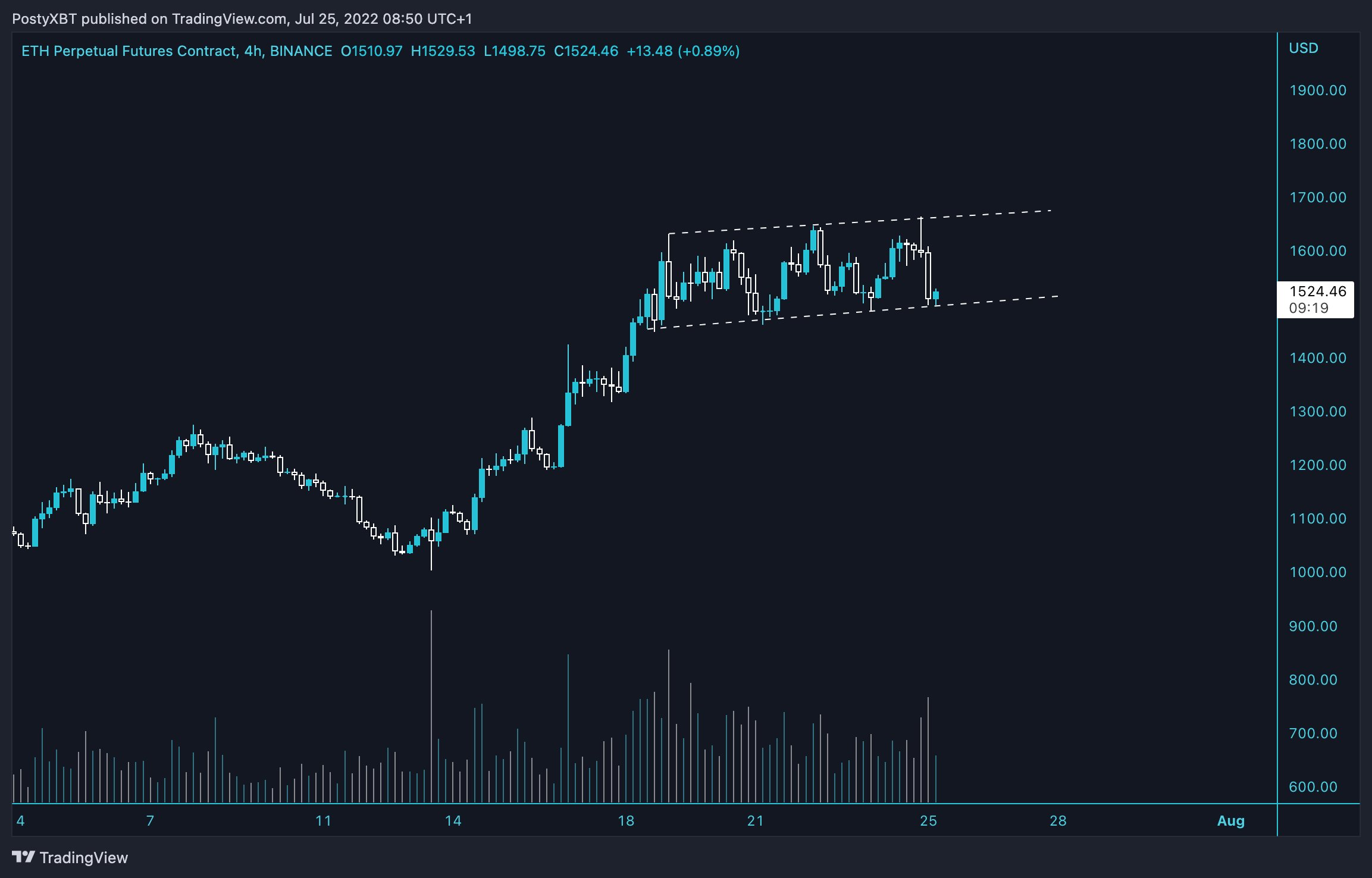 In other words, ETH’s price could hit $1,700 ahead of July’s close if the pattern plays out.
