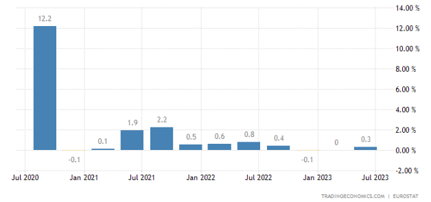 Na rozdiel od USA, ekonomika eurozóny oslabuje, čo vytvára tlak na euro. Eurozóna zaznamenala ekonomický rast iba 0,3 % v druhom kvartáli 2023. Aj to len vďaka Írsku, bez ktorého by rast bol iba na úrovni 0,1 %. Navyše dva predchádzajúce kvartály ekonomika eurozóny vôbec nerástla.