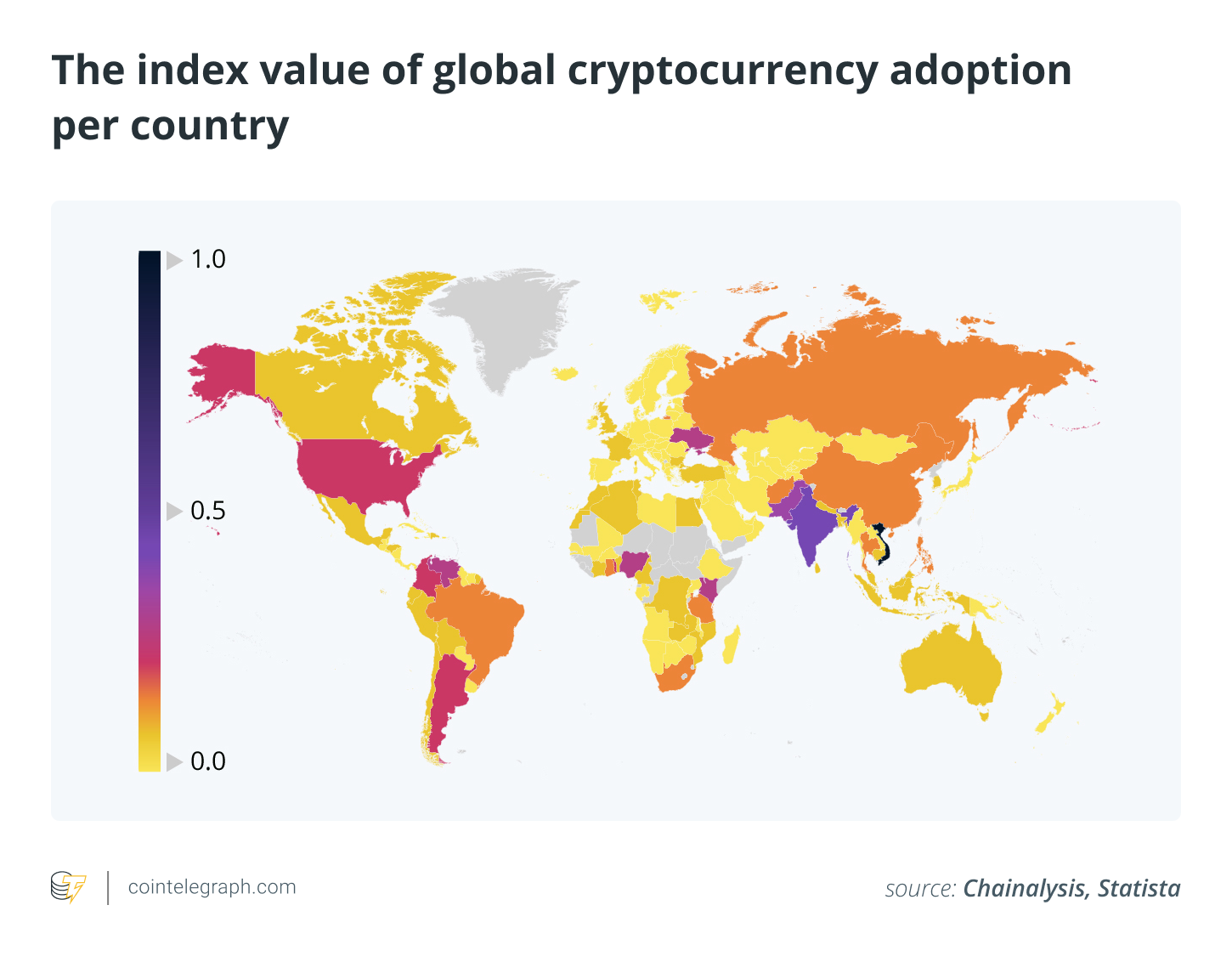 Soon after Ukraine’s vice prime minister tweeted the government’s crypto addresses, crypto started to zip into the Ukrainian government’s wallets at unprecedented speeds. In fact, Ukraine ranks fourth on the Global Crypto Adoption Index, compiled by data firm Chainalysis, which estimates that roughly $8 billion worth of cryptocurrency enters and exits the country annually. According to the New York Times, the daily volume of cryptocurrency transactions stands at around $150 million, exceeding the volume of interbank exchanges in the hryvnia.