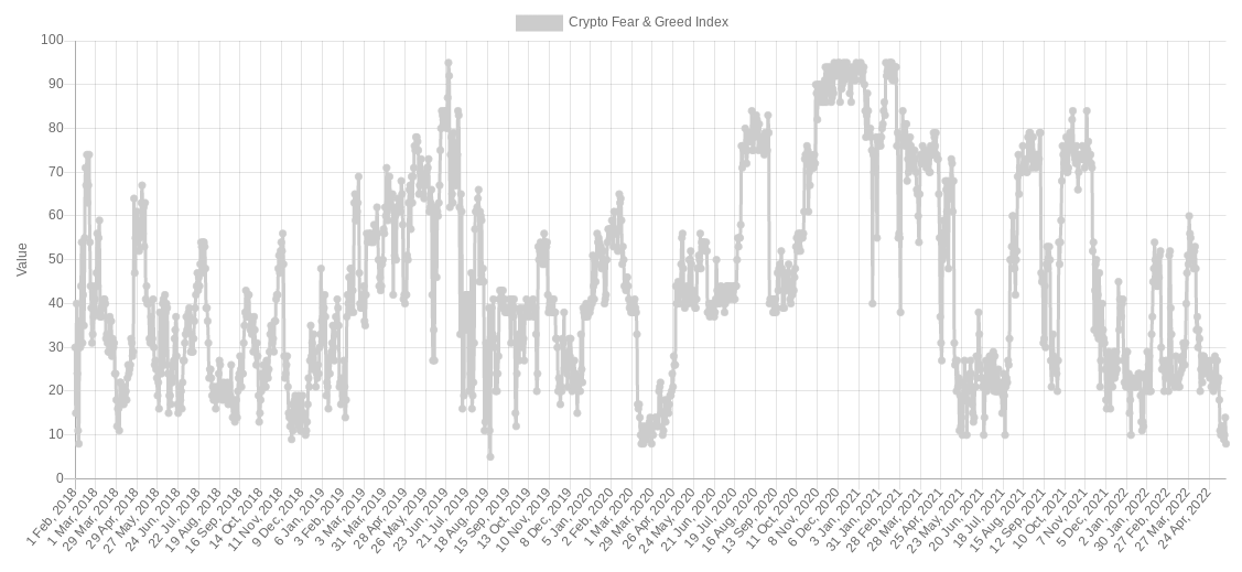 The Crypto Fear & Greed Index, a cross-market sentiment gauge, hit 8/100 on May 17, its lowest value since March 28, 2020 — two weeks after the Coronavirus lockdown-induced meltdown.