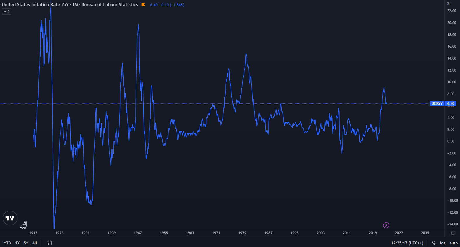 Podľa údajov z TradingView inflácia v USA klesla na úroveň 6,40 %, čo je o 2,10 % menej v porovnaní s eurozónou. Ako sme vás informovali, FED spomaľuje zvyšovanie úrokových sadzieb, no napriek tomu je ich úroveň extrémna. V prípade, že bude v agresívnej reštriktívnej politike pokračovať aj naďalej, obavy z recesie sa stanú skutočnosťou.