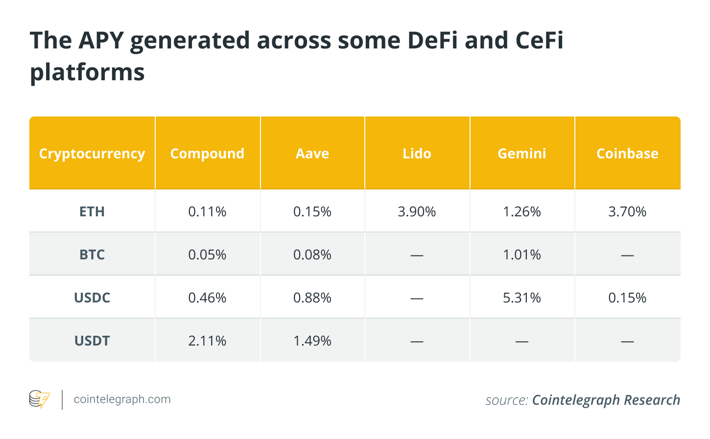 While keeping a buying discipline within the DCA framework and doing research are crucial, finding a low-risk solution generating substantial yields may be tricky. Meanwhile, a new crypto market cycle is set to bring developments that will hopefully bring novel solutions, attractive in both risk and returns. Cointelegraph Research evaluates multiple platforms and assesses the sustainability of current DeFi and CeFi yields in its upcoming report.