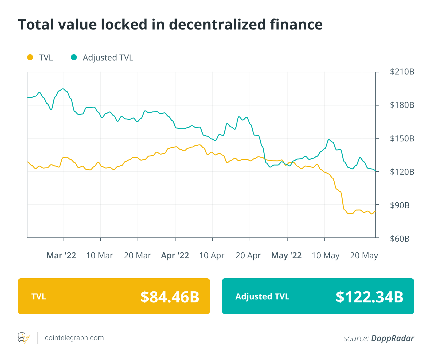 Analytical data reveals that DeFi’s total value locked remained under the $100 billion mark, falling to $84.2 billion. Data from Cointelegraph Markets Pro and TradingView reveals that DeFi’s top 100 tokens by market capitalization registered a week filled with volatile price action and constant bearish pressure.