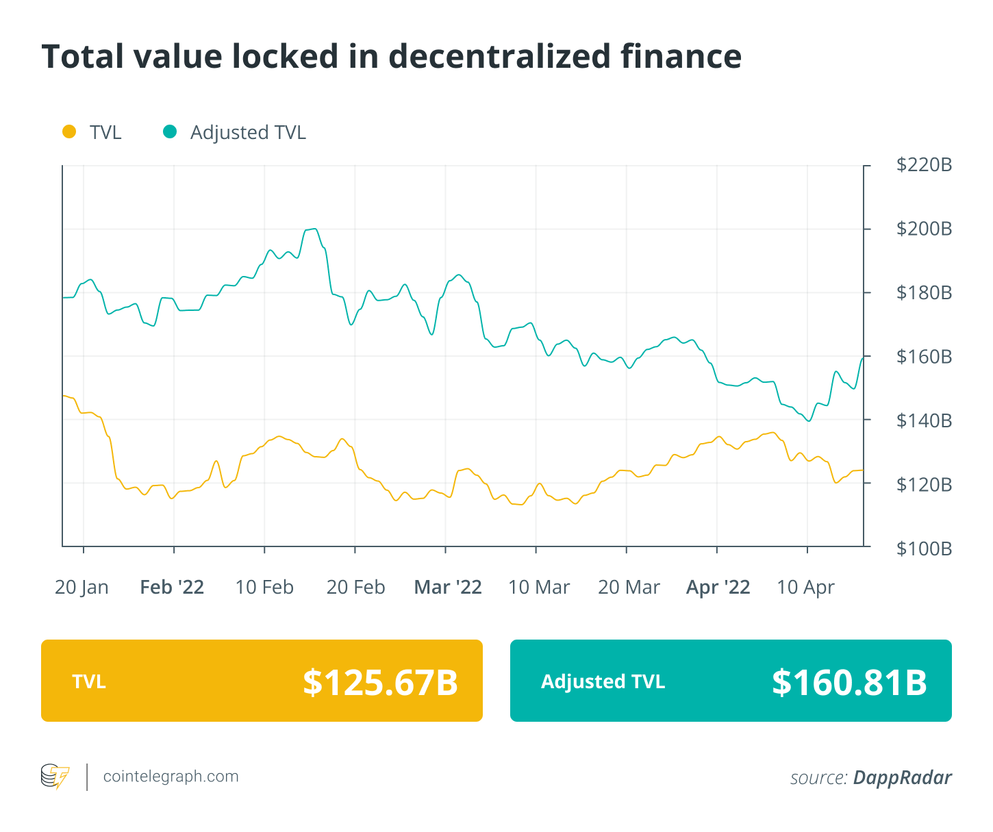 Analytical data revealed that DeFi’s total value locked has registered a $5 billion dip over last week, reaching $125 billion at the time of writing. Data from Cointelegraph Markets Pro and TradingView shows that DeFi’s top 100 tokens by market capitalization saw another week of bearish decline.