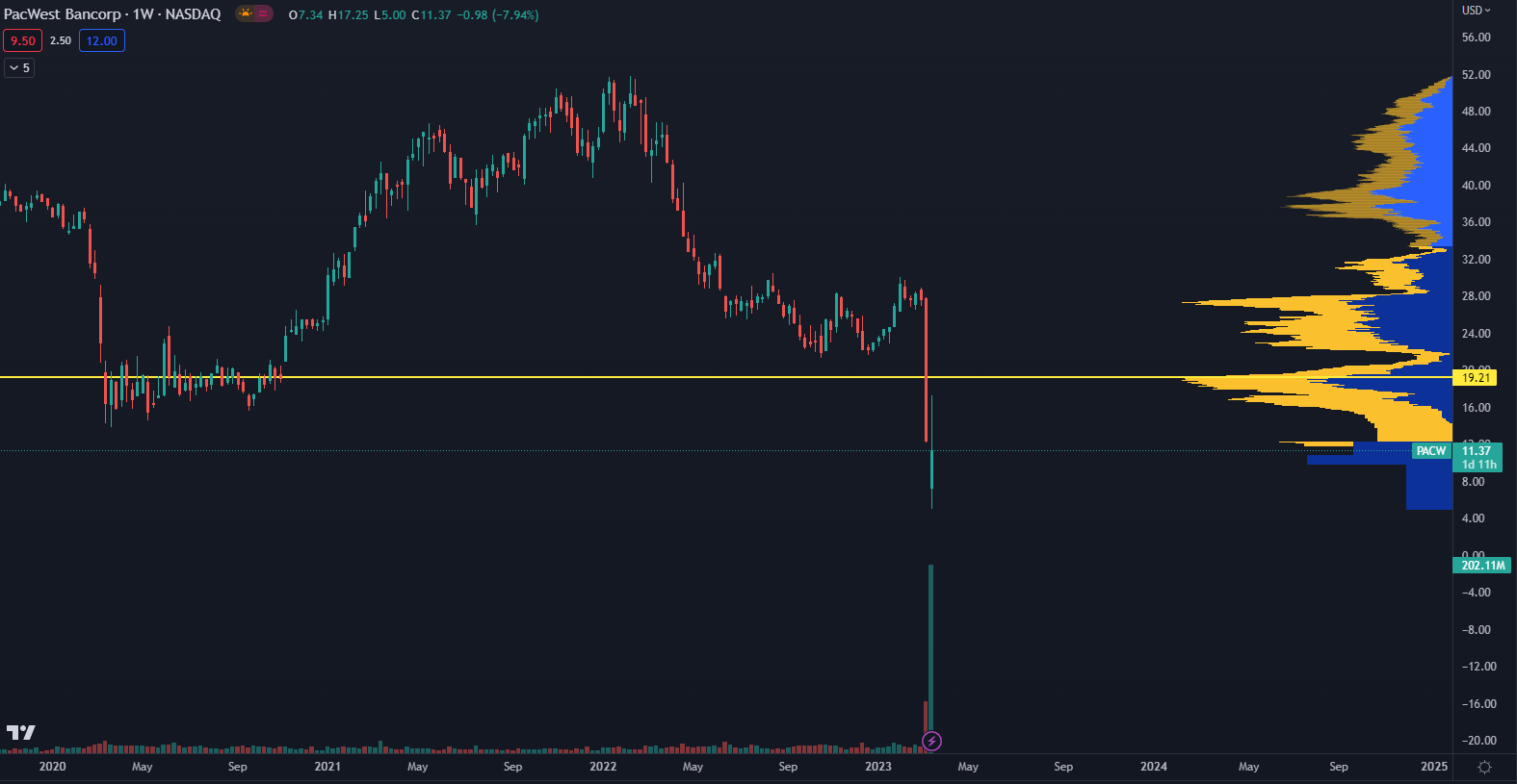 Akcie PACW klesli za jediný týždeň o viac ako 55 % a naposledy sa obchodovali na rovnakej cenovej úrovni v marci 2009.