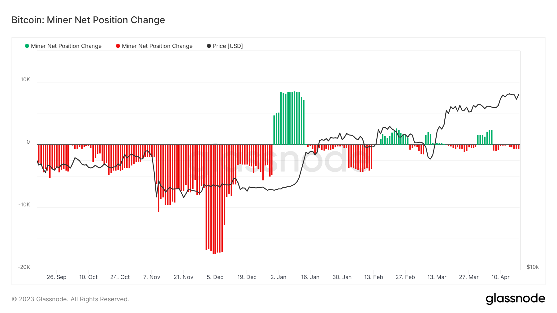 On April 18, miners decreased their Bitcoin holdings by 648 BTC compared with one month ago, according to data from Glassnode.