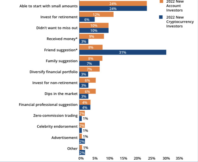 Published by the United States Financial Industry Regulatory Authority (FINRA) Investor Education Foundation in late April, the survey found that a large portion (31%) of new cryptocurrency investors cited “friend suggestion” as the primary reason for their foray into crypto.