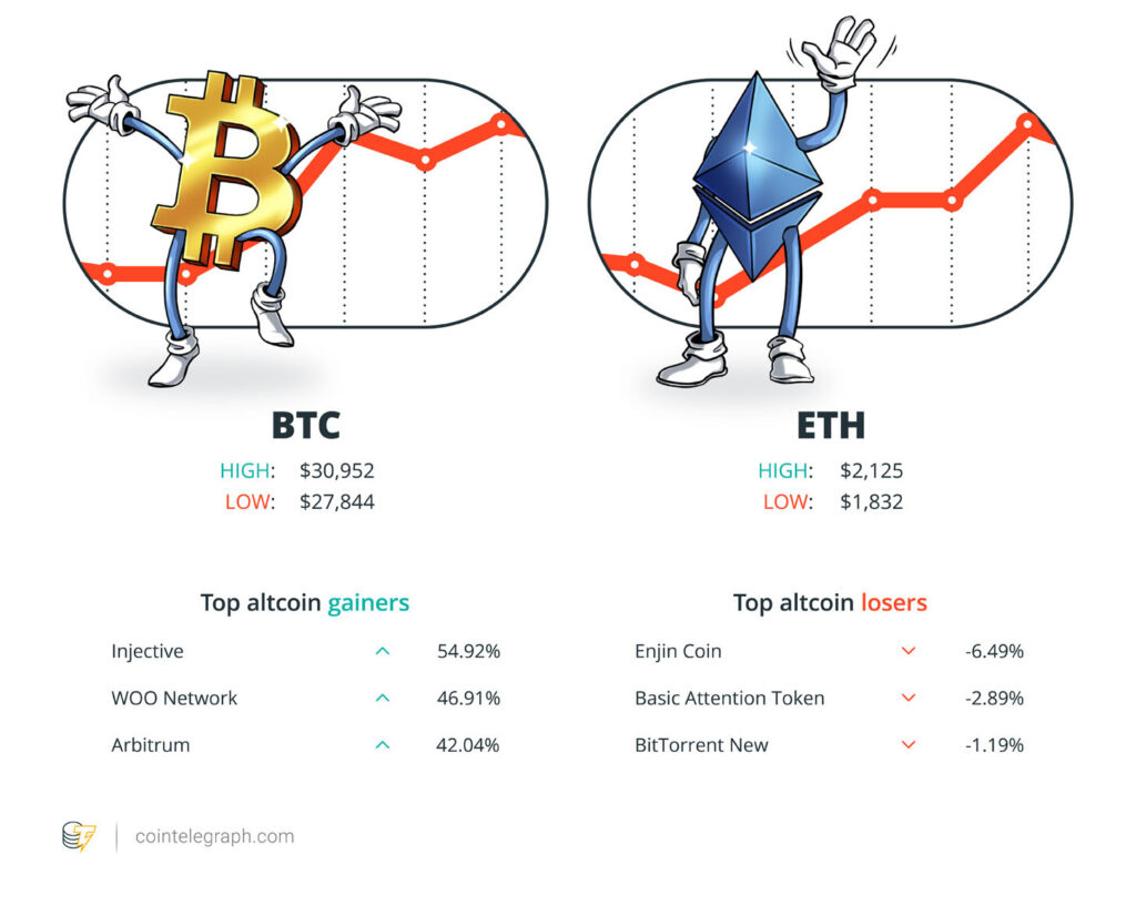 Bitcoin enjoyed some positive action this week, poking through the $31,000 price level, according to Cointelegraph’s BTC price index. Michaël van de Poppe, CEO and founder of trading firm Eight, pointed to a few price points of potential interest.