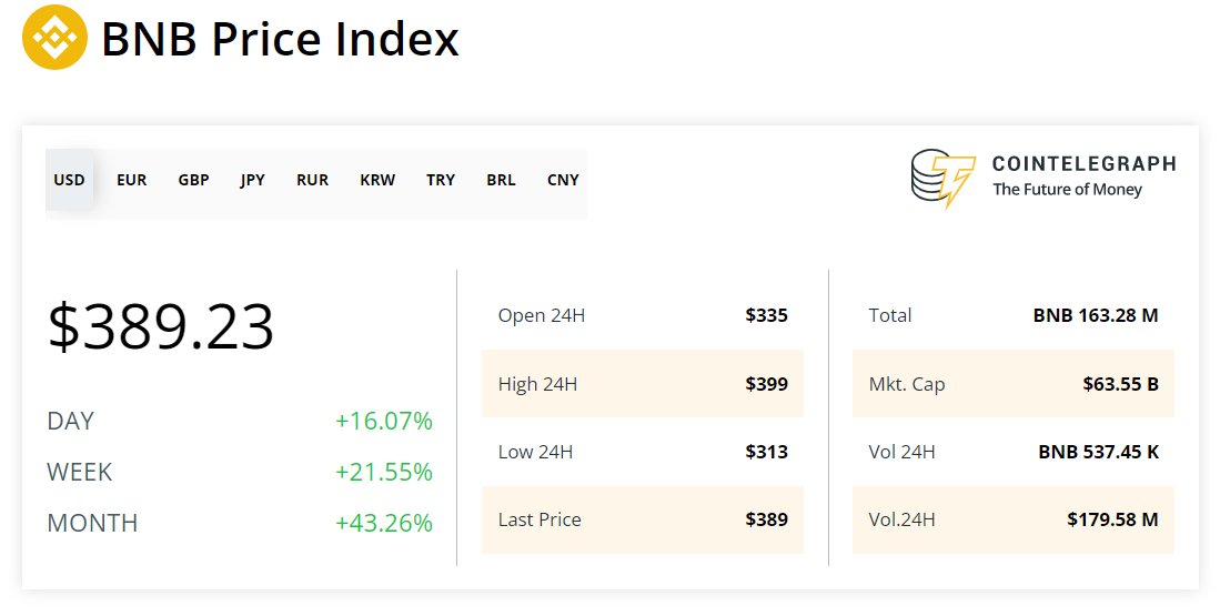 The price of BNB (BNB) has also suffered over the past few days, dropping by 14%, but the news of Binance agreeing to acquire FTX was followed by the exchange token staging a 25% rally within the hour.