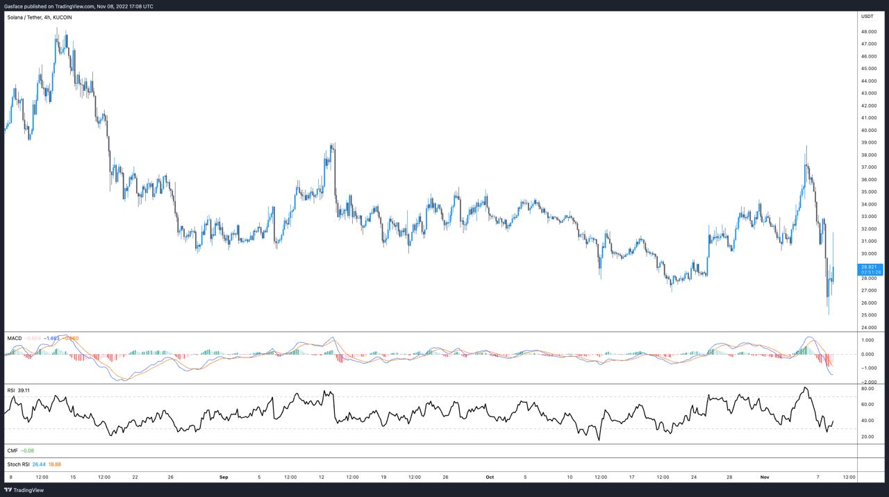 During the disagreement between exchanges, FTT price dropped 38.7% from $25.71 to $15.76, and SOL price fell 31.23% to a five-month low at $25. After news of a potential agreement between FTX and Binance, FTT price bounced more than 20%, but it still trades well below what had been long-time support at $22.