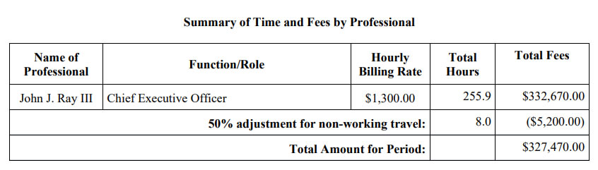 The figure didn’t include the recompense for restructuring chief and CEO John J. Ray III who pocketed $305,000 in February according to a March court filing.