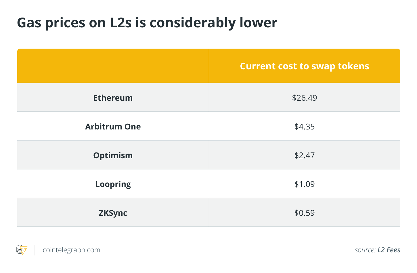 Once the scalability issues are solved, gas fees become much more negligible. You can see that the gas fees on L2s are considerably cheaper in the figures below.