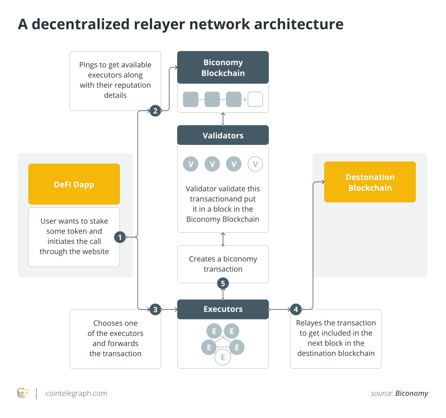 A multichain relayer network is the best solution to enable this vision. As explained in the diagram above, the user forwards their request to a relayer node (executor) who then manages the transaction on the user’s behalf. The DApp can then refund this relayer node with the gas fee for the transaction so the user does not have to either pay the gas fee or manage other transaction parameters to make it successful.