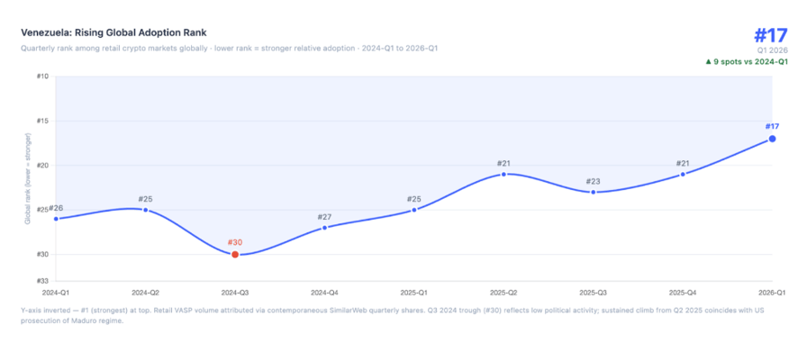 The study also flagged Venezuela as a major growth market for crypto adoption amid ongoing sanctions. Source: TRM Labs