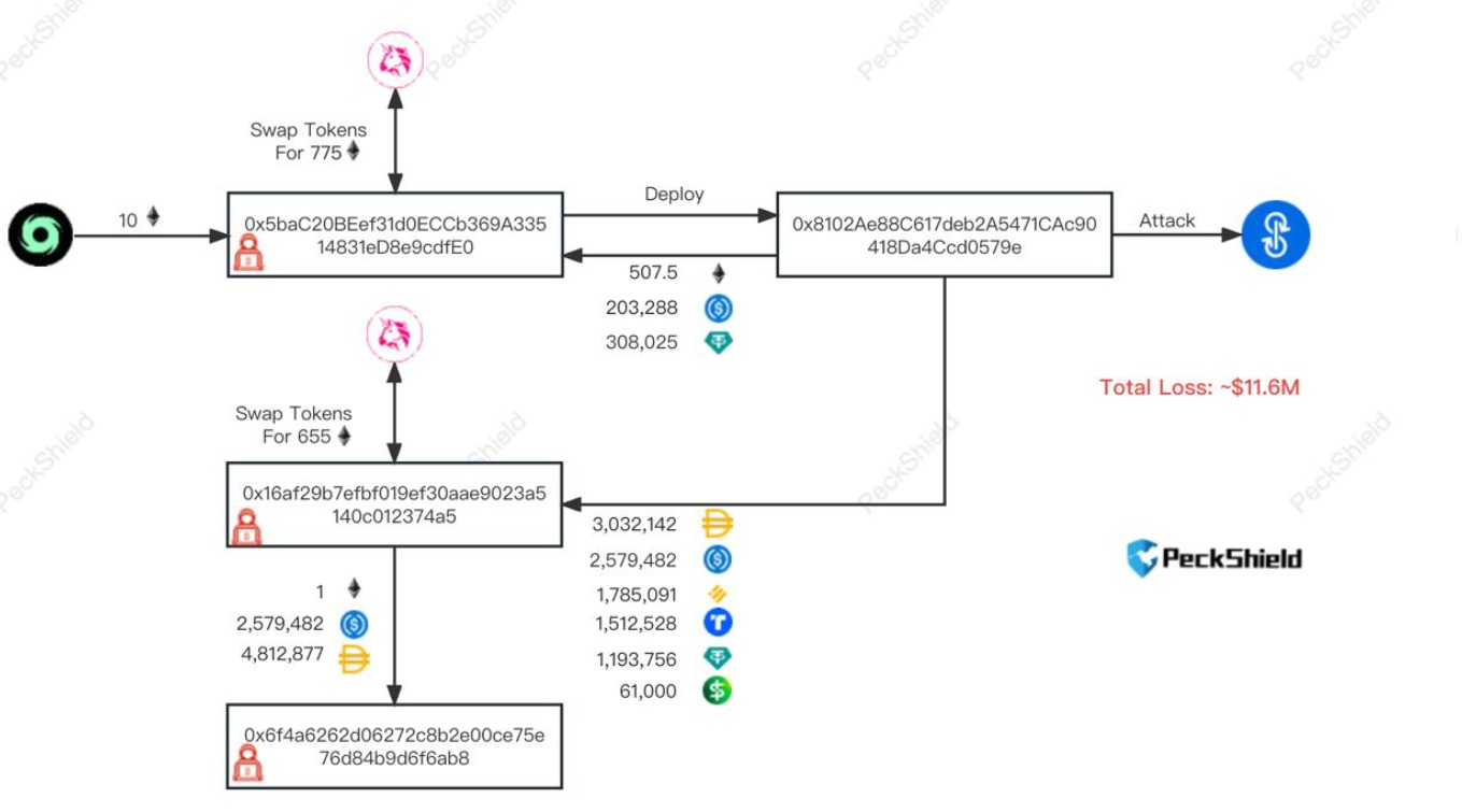 According to the security firm, the hacker then swapped the yUSDT to other stablecoins, allowing them to take hold of $11.6 million worth of stablecoins. This includes 61,000 Pax Dollar (USDP), 1.5 million TrueUSD (TUSD), 1.79 million Binance USD (BUSD), 1.2 million Tether (USDT), 2.58 million USD Coin (USDC) and 3 million in DAI (DAI).