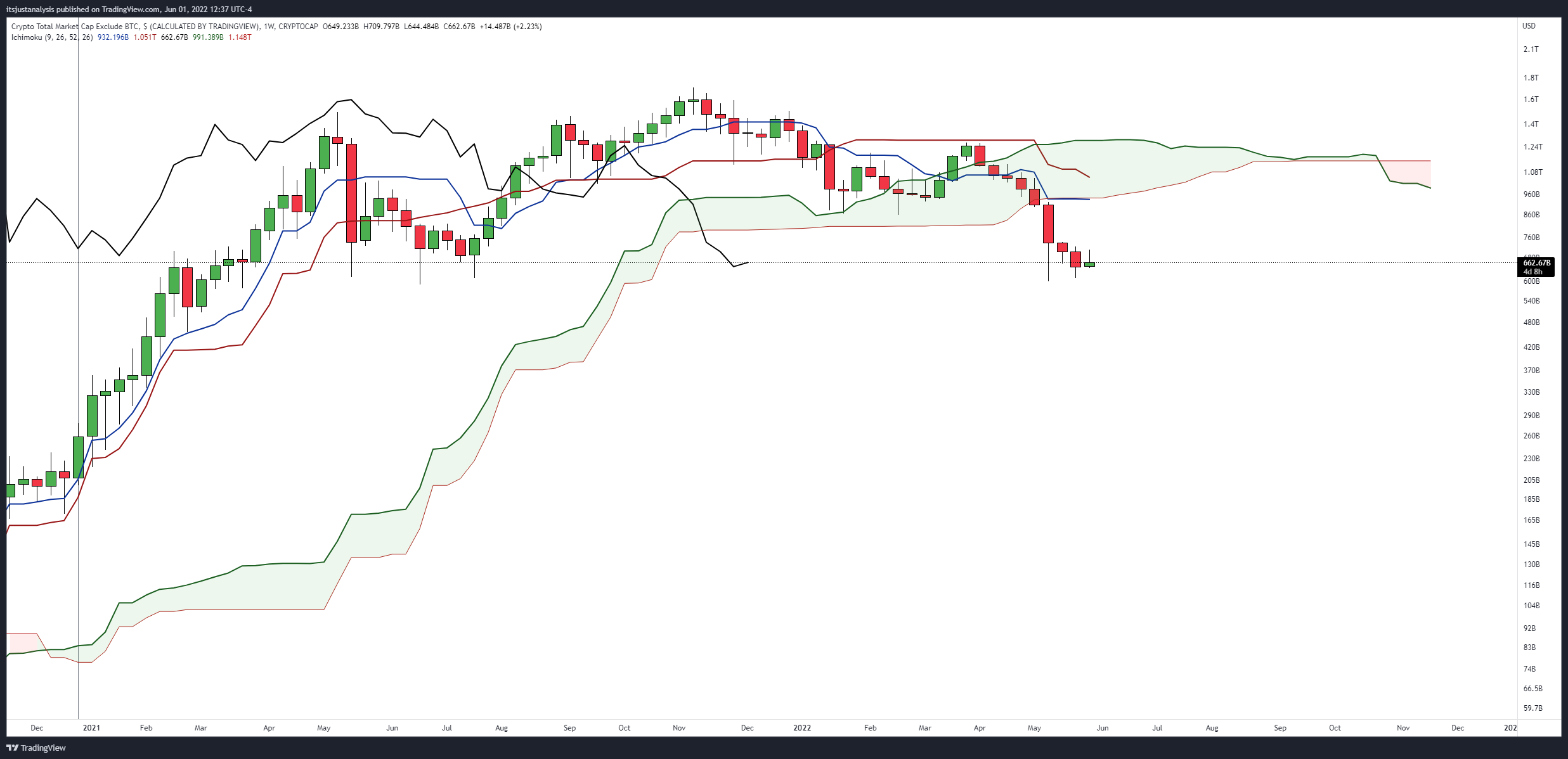 Any renewed bullish momentum in for Bitcoin will likely see MATIC lead the altcoins higher until it reaches the $1.00 to $1.15 value area near the weekly Tenkan-Sen.