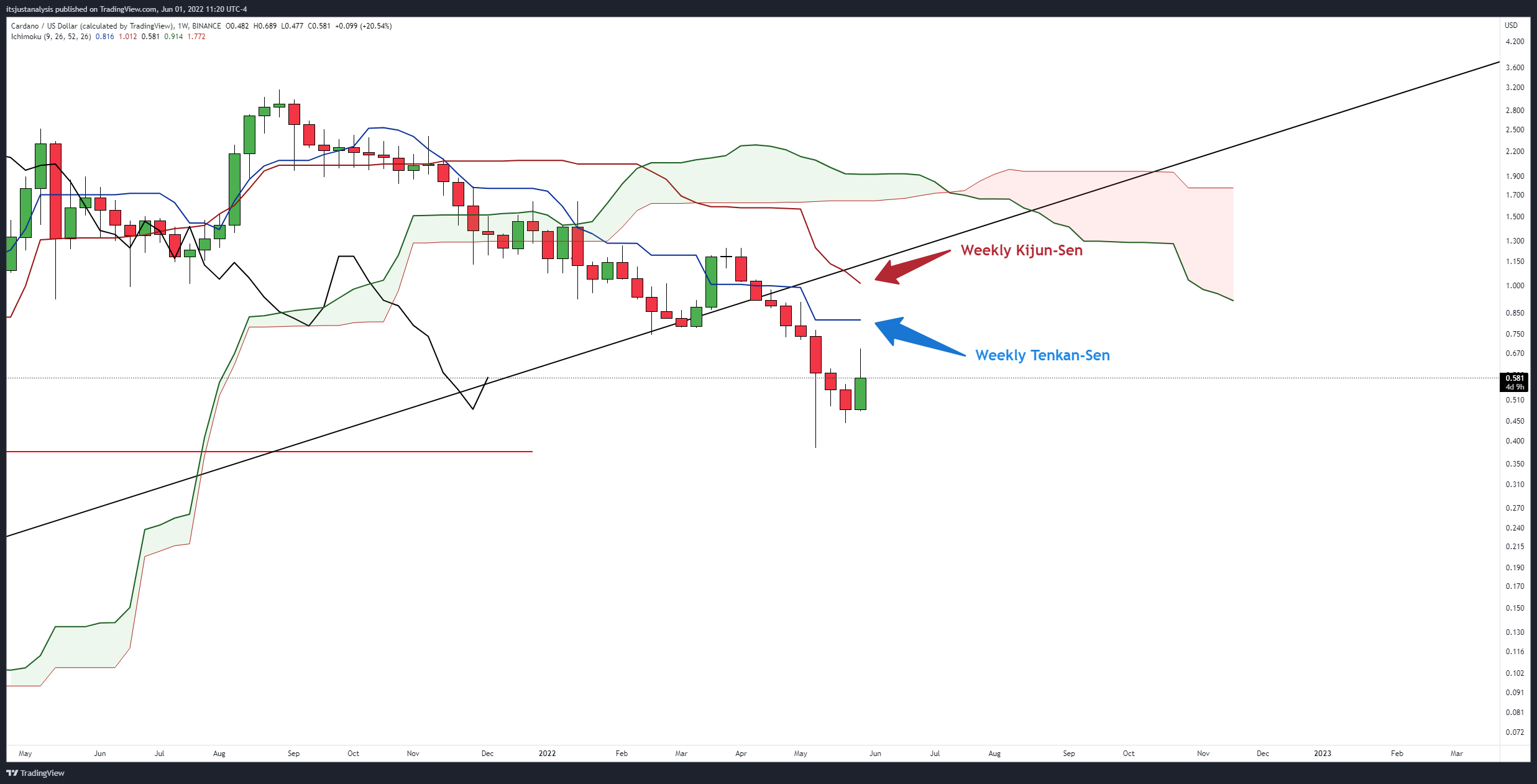 However, if the broader cryptocurrency market experiences a big bounce, ADA price may shoot past the Tenkan-Sen to test the Kijun-Sen. ADA has not tested the weekly Kijun-Sen since the week of November 8, 2021.
