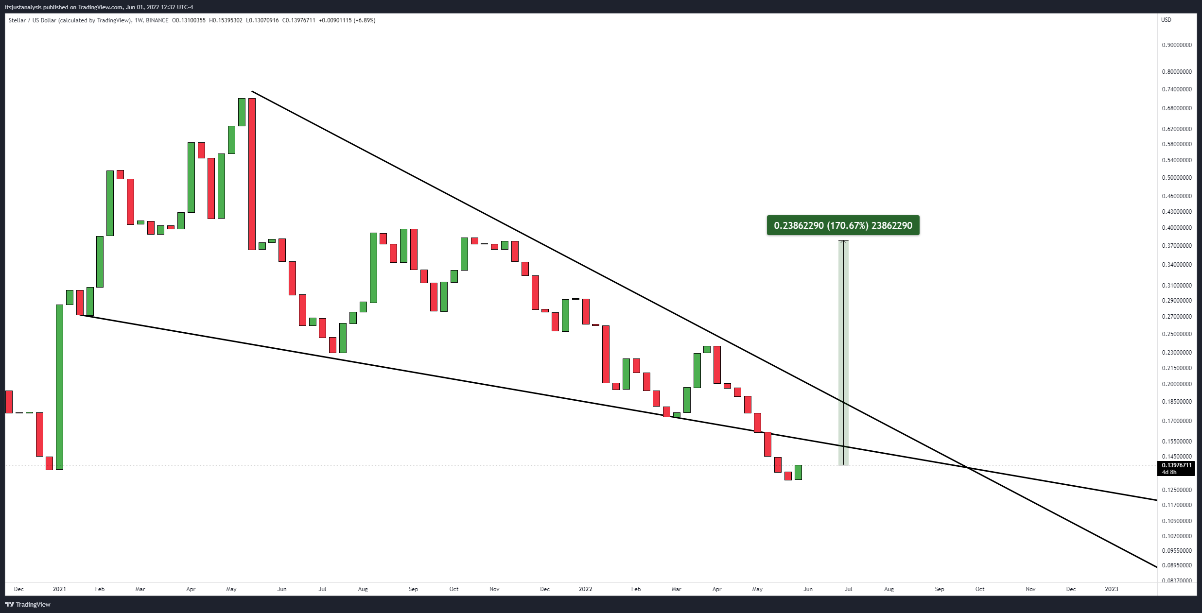 Sometimes it is hard to forget that during the last major bull run from the COVID crash to November 2021, there were a few major altcoins that did not hit new all-time highs. Stellar (XLM) is one of them. In fact, the last time XLM made a new all-time high was the week of January 8, 2018, almost four and a half years ago!