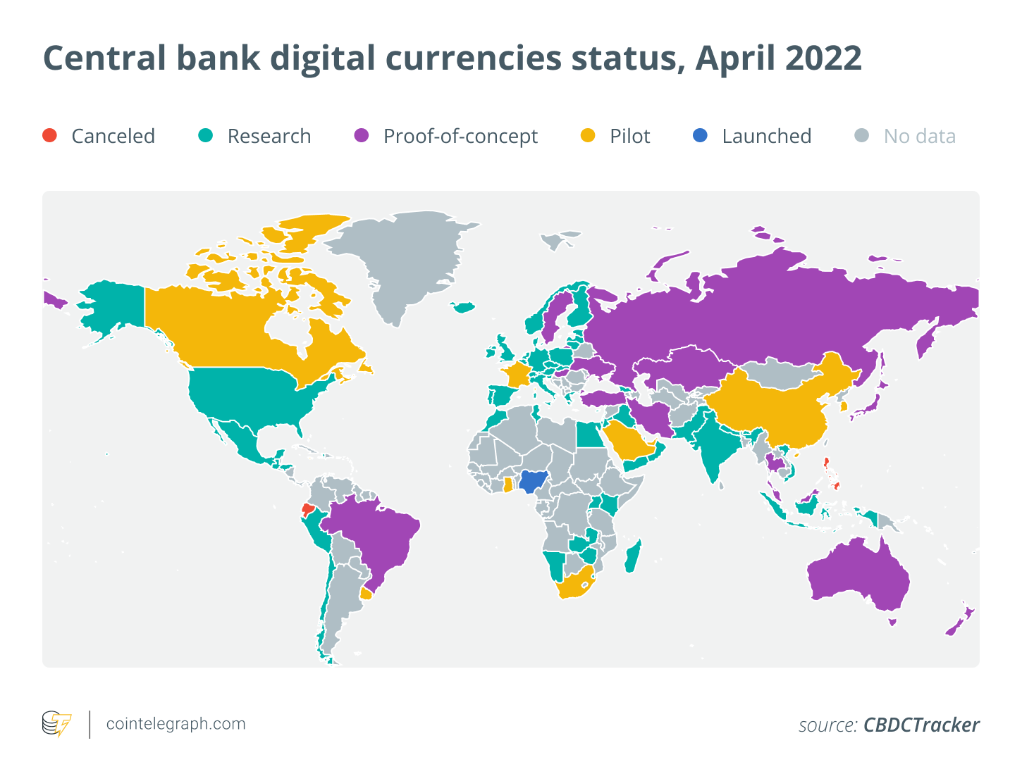 According to a survey from Deutsche Bundesbank, Germany’s central bank, the share of cash payments in point-of-sale transactions made by German consumers dropped from 74% in 2017 to 60% in 2020. Accordingly, Bundesbank has been working on distributed ledger technology asset settlements. Meanwhile, the European Central Bank is exploring creating a CBDC, dubbed the digital euro. Recent research commissioned by the ECB, based on discussions with panels of EU citizens, emphasizes security and universal acceptance as primary concerns.
