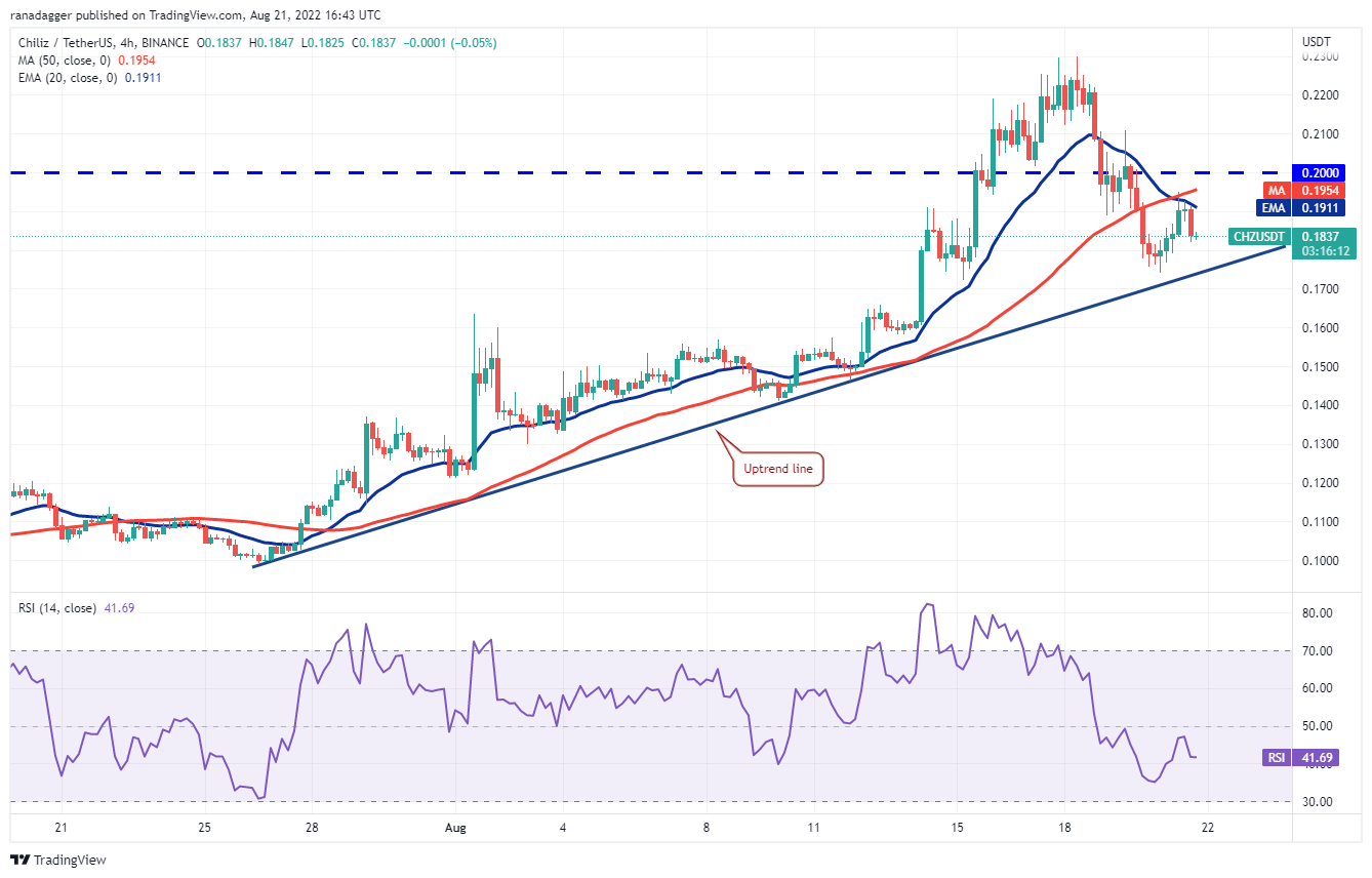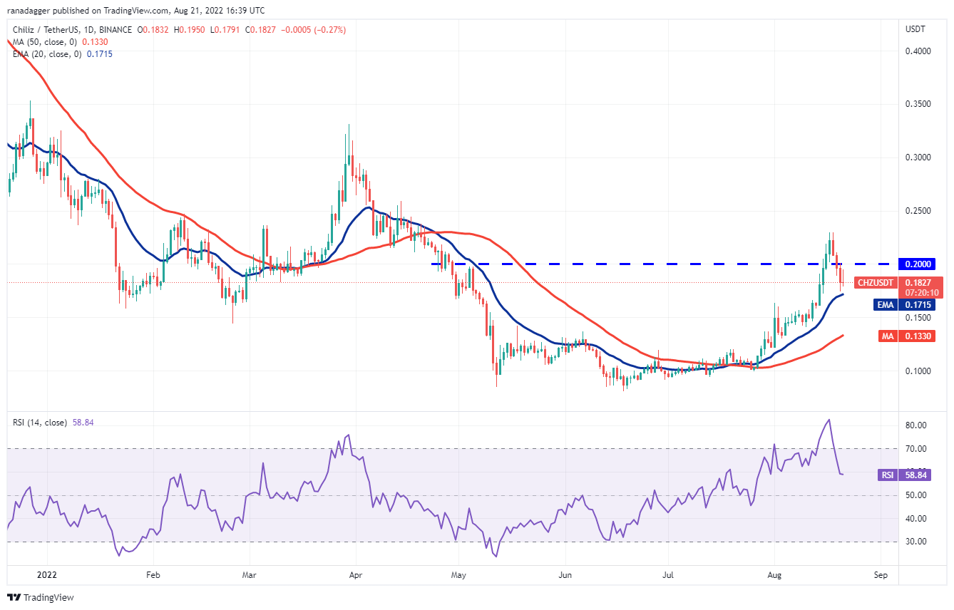 Chiliz (CHZ) soared to $0.23 on Aug. 18 which pushed the RSI deep into the overbought territory. This may have tempted short-term traders to book profits and that pulled the price back below the breakout level of $0.20.