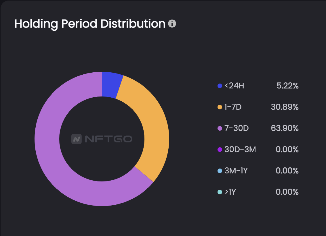 According to data from NFTgo, 60% of diamond-hand investors have held their Aku Mint Pass 60% for more than a week, while approximately 30% owners have held for at least a week.