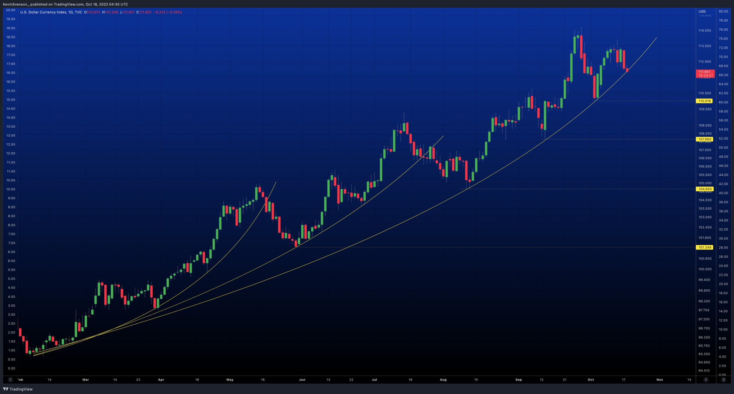 The day prior, market analyst Kevin Svenson had made a bold prediction for the dollar, arguing that Bitcoin would see explosive growth should the DXY 2022 “parabola” break down definitively.