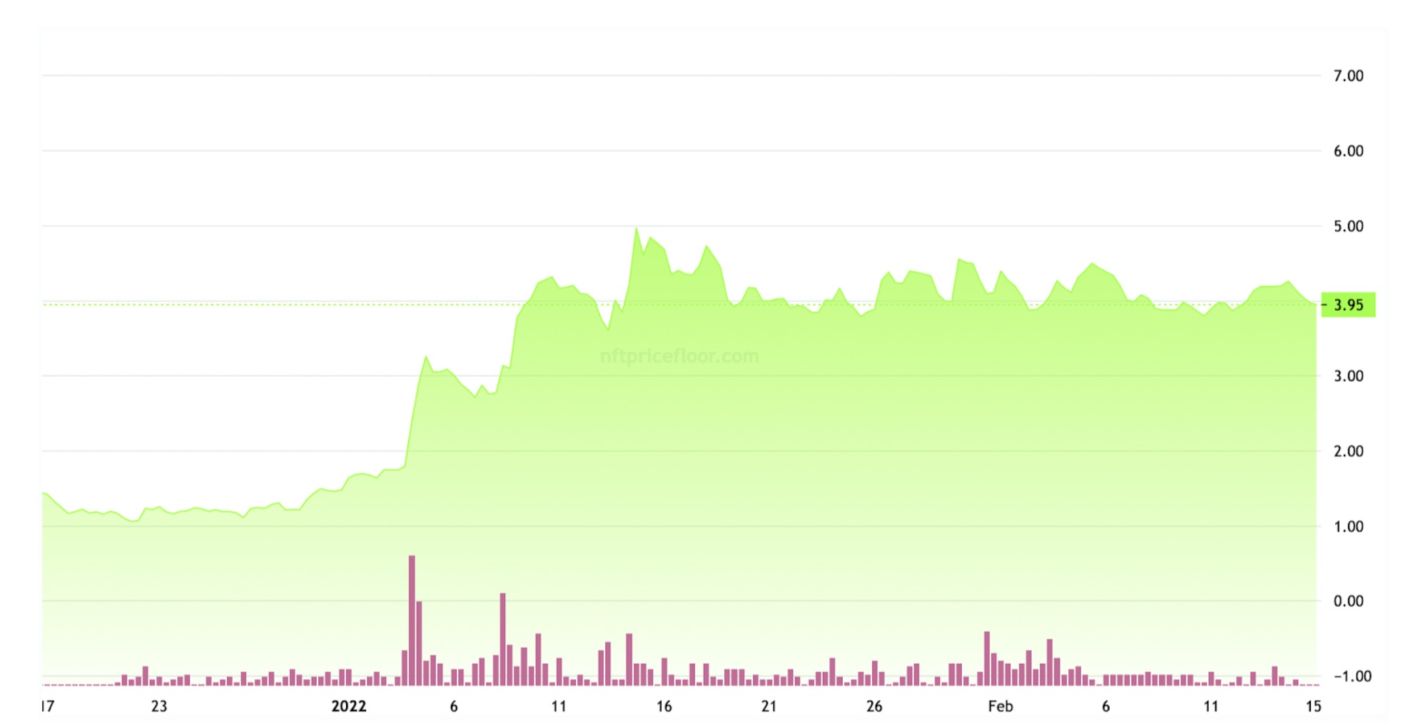 In the last 7 days, the average sale price of the genesis boxes have been on a downward trend dropping from 6.3 Ether to 5.3 Ether. It seems even with slight correction, the genesis boxes have not dipped below the 4.75 Ether in the last month.