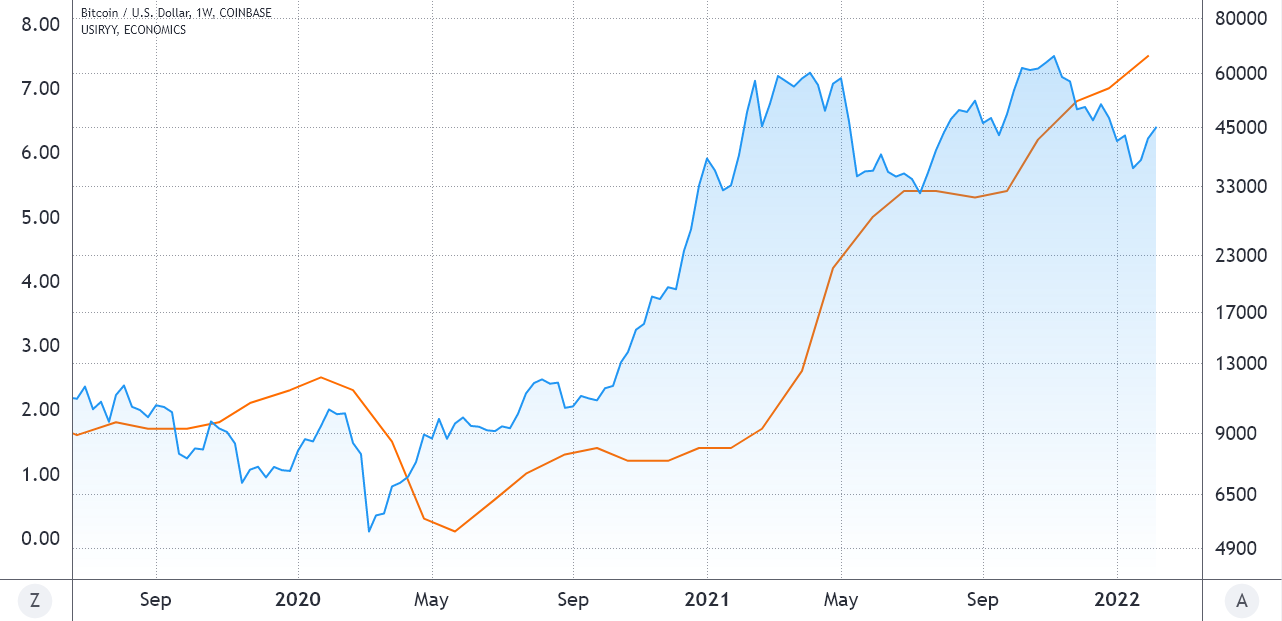 For those relying on mathematical formulas, the correlation coefficient between Bitcoin price and U.S. inflation oscillated between positive 0.95 and negative 0.94 over the past 12 months. Therefore, associating one to another makes very little sense from a statistical approach.