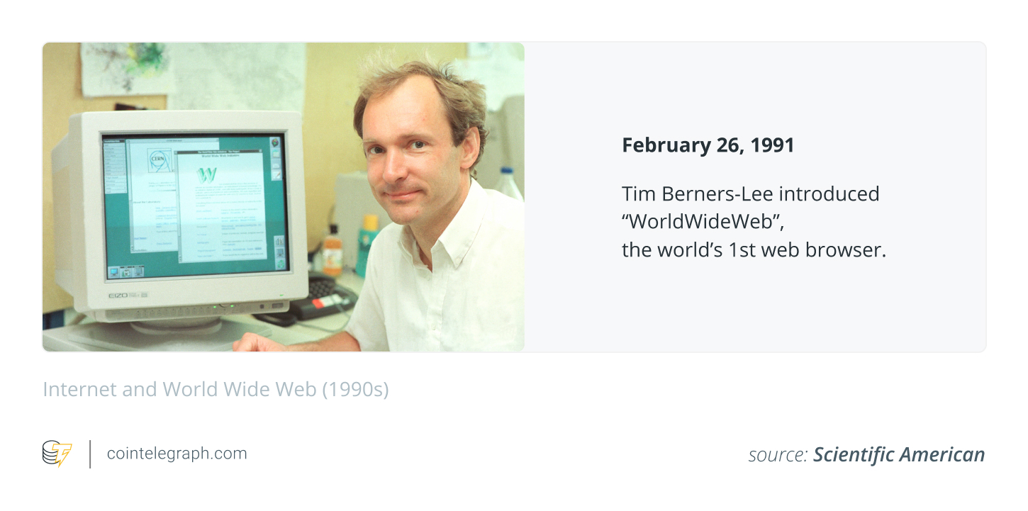 With the advent of the internet and the growth of the World Wide Web, computing became a vast worldwide network of interconnected devices. Tim Berners-Lee created the HTTP, HTML and URL protocols to make simple information sharing and browsing possible.