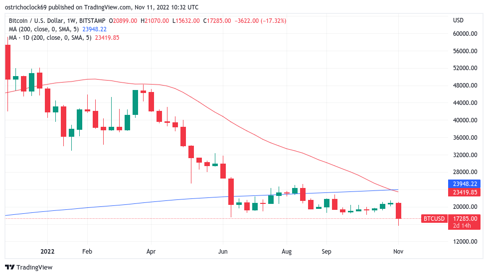 As BTC/USD crashed to two-year lows of $15,600, investors began to lose big, and at current levels of $17,200, the situation is not much better.