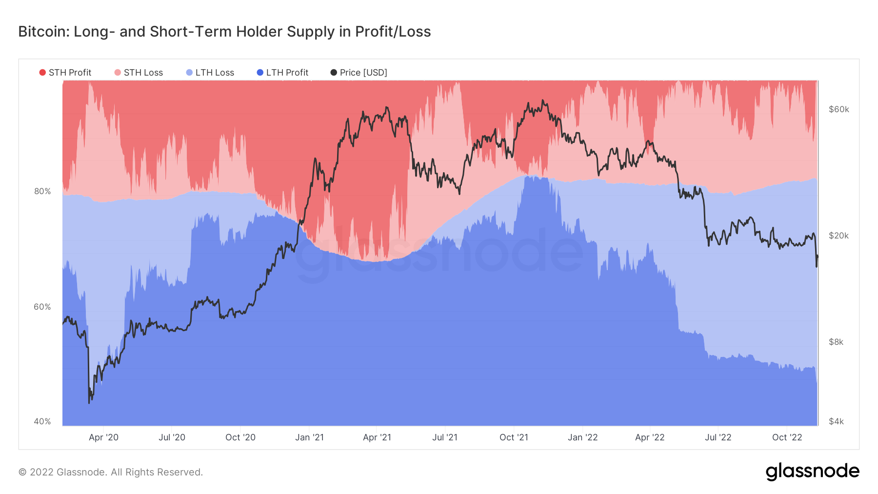 Short-term holders (STHs) held another 17% of the supply at a loss, and STHs in profit accounted for just 0.06% of the supply on Nov. 9.