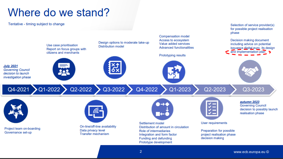 V prvej fáze zavedenia digitálneho eura bude priorita kladená na elektronický obchod a potom bude nasledovať fyzický obchod a vládne platby, ako sa uvádza v dokumente „Prístup k zavádzaniu digitálneho eura“ zverejnenom 22. februára.