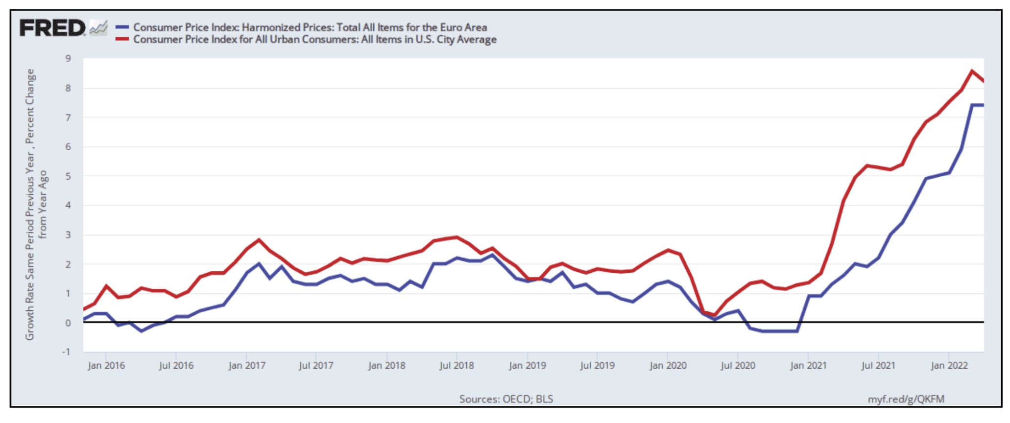 Notably, earlier this year the Federal Reserve announced that it was taking stringent measures to “accelerate tapering of monthly bond purchases.” In other words, the United States planned to introduce measures that slow down its economy to control the ever-rising inflation in the country. The following graph shows the inflation trend from 2016 to 2022.