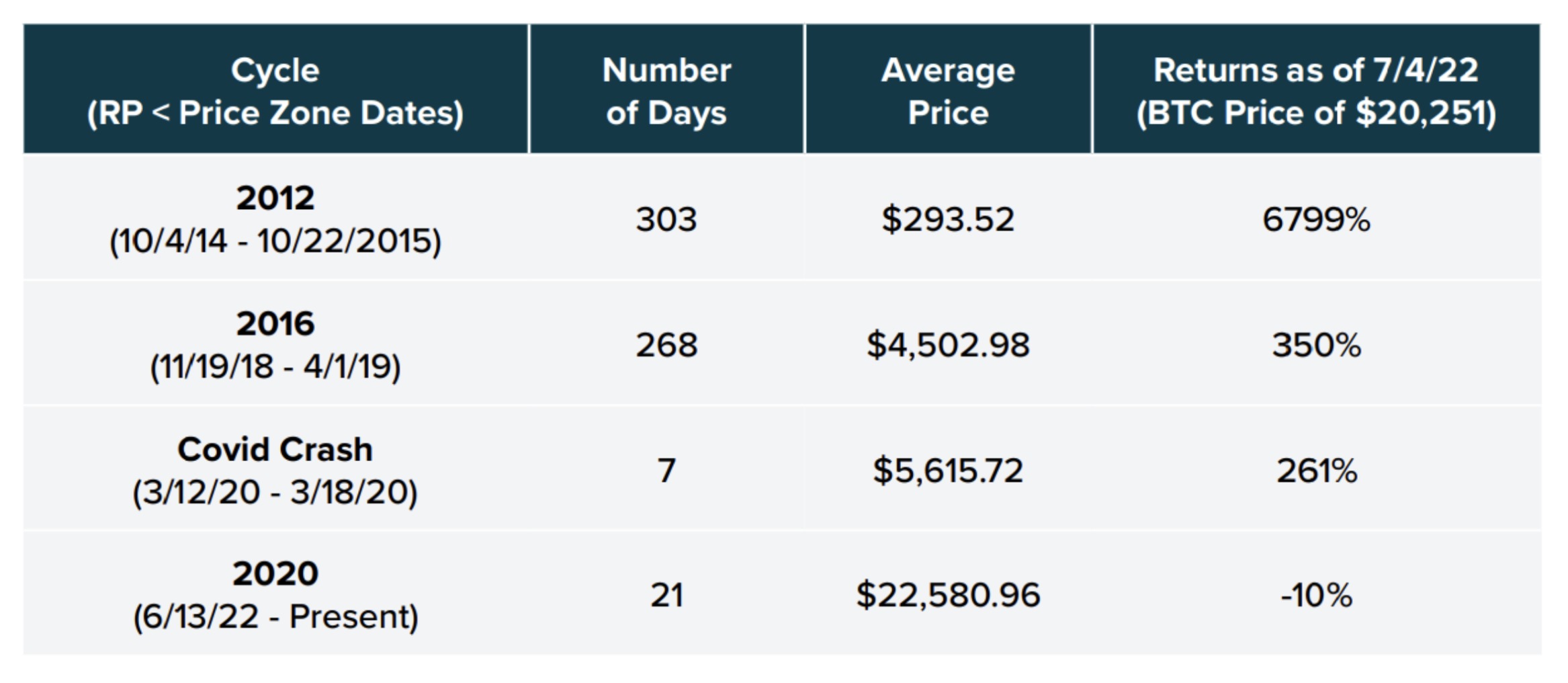It is interesting to note that by July 12, the cycle had completed 1,198 days. Since the entire cycle takes 1,725, it means that by that date there were four months until the realized price would cross above the BTC market price.