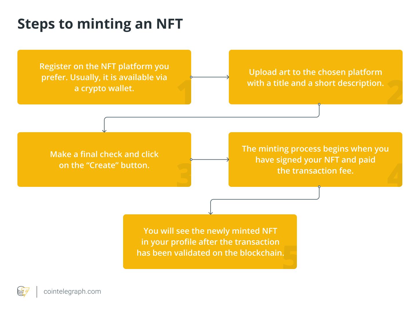 It is quite easy to create an NFT from digital art without coding. The process of creating them is called minting. It is basically the act of publishing a unique instance of the token on the blockchain. NFTs are minted once they are created, similar to how metal coins are created and added into circulation.