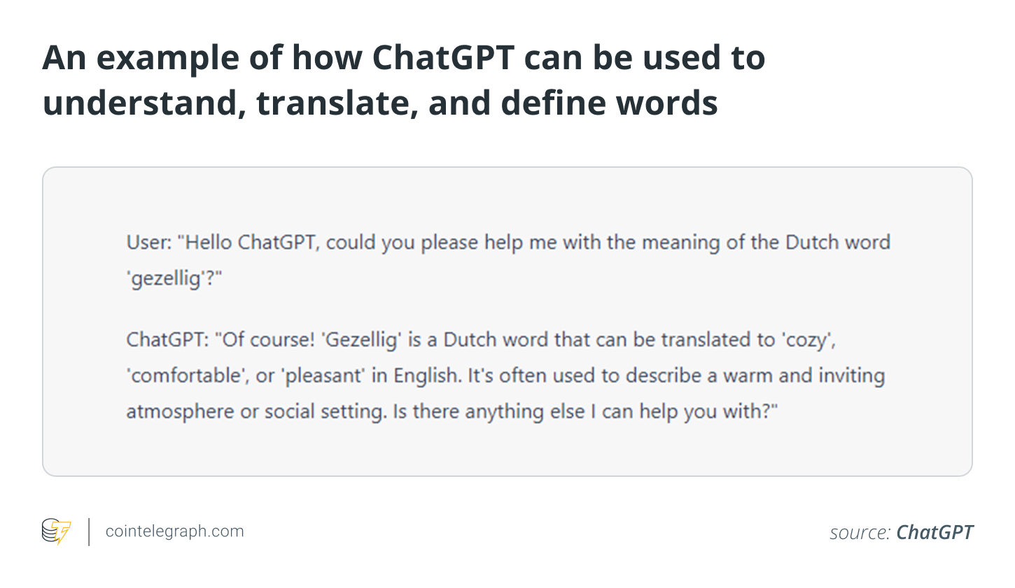 https://images.cointelegraph.com/images/840_aHR0cHM6Ly9zMy5jb2ludGVsZWdyYXBoLmNvbS91cGxvYWRzLzIwMjMtMDQvMzY4YzJkMDEtNTg4YS00MWZiLTliZDktMDMzMDk4YzhiYmE5LmpwZw==.jpgAsk ChatGPT for definitions, translations and grammar explanations in your target language.