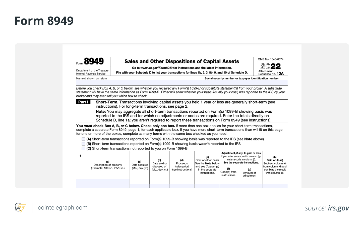 For instance, when it comes to accurately documenting transactions involving assets that may result in capital gains or losses, Form 8949 is your go-to resource. This versatile form encompasses a wide range of assets, including digital assets, stocks, bonds and more. By diligently utilizing Form 8949, you can ensure thorough and accurate reporting of your financial activities while complying with tax regulations.