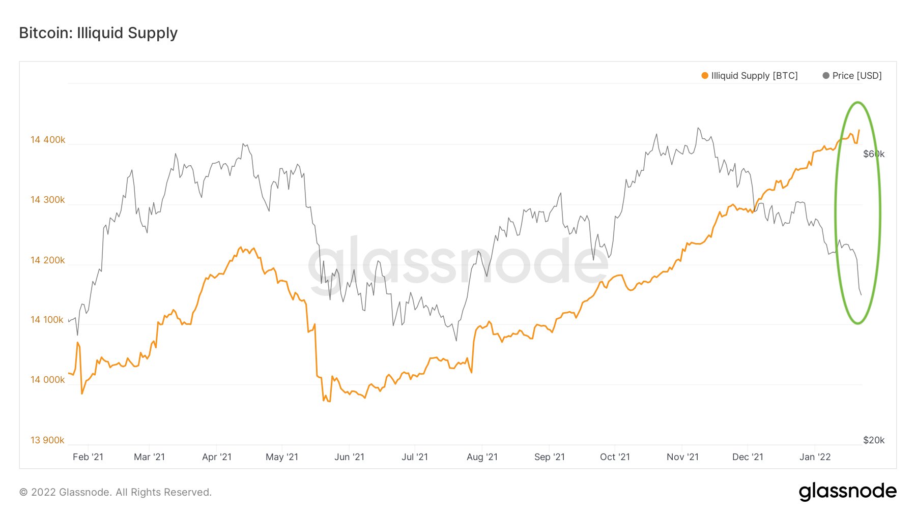 In January, despite the downtrend, the conversion of Bitcoin to illiquid actually accelerated, underscoring the desire from investors to buy at price levels seen over recent weeks. Selling, it would seem, is the last thing on their minds.