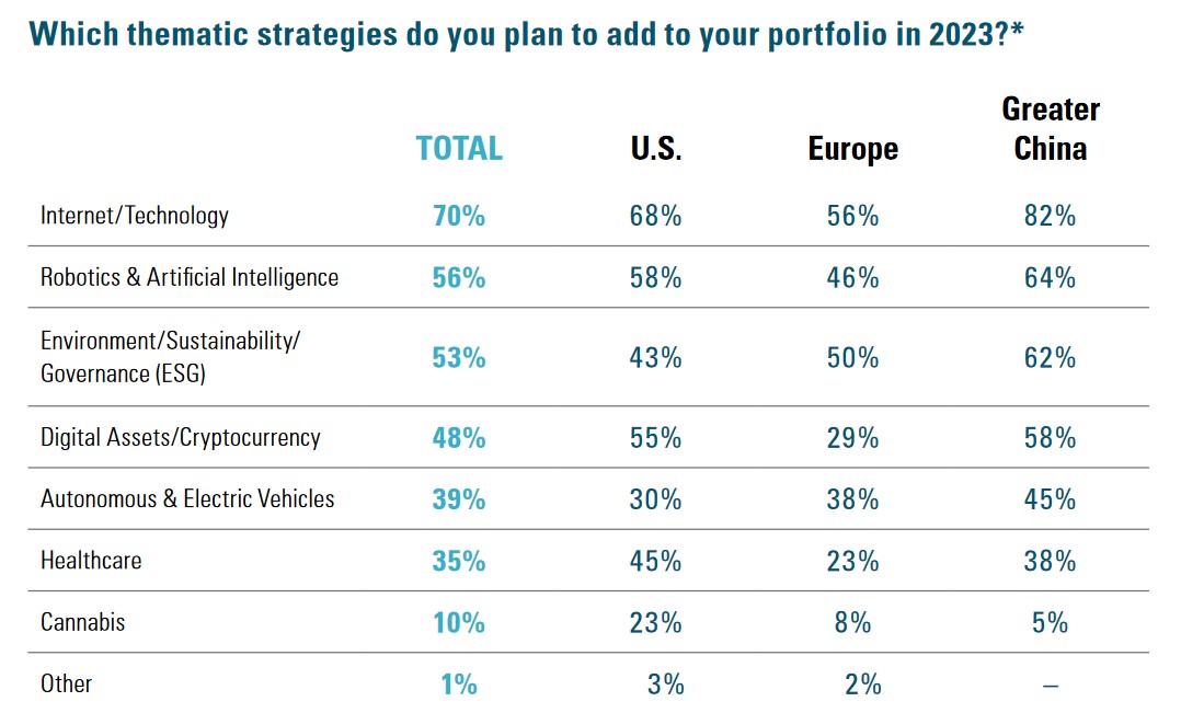 While crypto-themed ETFs fell down the priority list for some — nearly half still plan to “add” crypto ETFs to their portfolios this year to diversify investments.