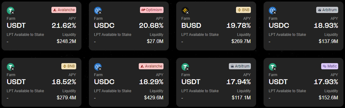 A third factor helping to attract attention and users to Stargate Finance are the attractive stablecoin farming yields across its supported networks.