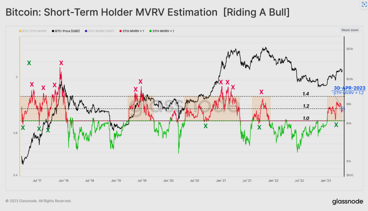 Ziskovosť, akú bitcoin zatiaľ zaznamenal v roku 2023, sme naposledy mohli vidieť počas posledného bullrunu. Od januára sa obchoduje o 73 % vyššie a zdá sa, že sentiment je mierne pozitívny. Podľa najnovšej správy od Glassnode by ale zo strednodobého hľadiska mohla prísť hlbšia korekcia.