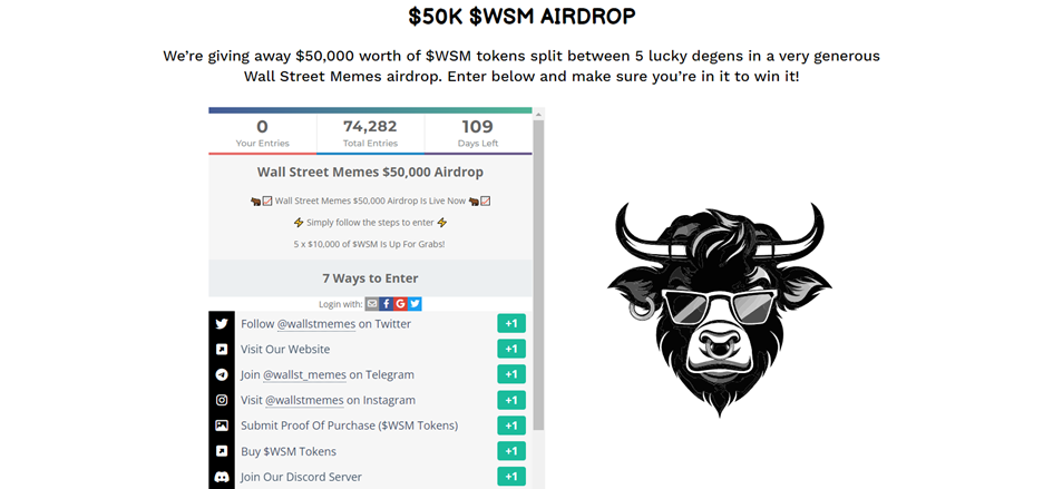 Okrem iného, projekt organizuje aj súťaž, v ktorej päť vyvolených získa naozaj štedrý darček v hodnote 50 000 dolárov. Investori, ktorí si zakúpili token $WSM sa na oficiálnej internetovej stránke môžu zapojiť do airdropu, čím si zabezpečia miesto v súťaži o lákavú výhru.