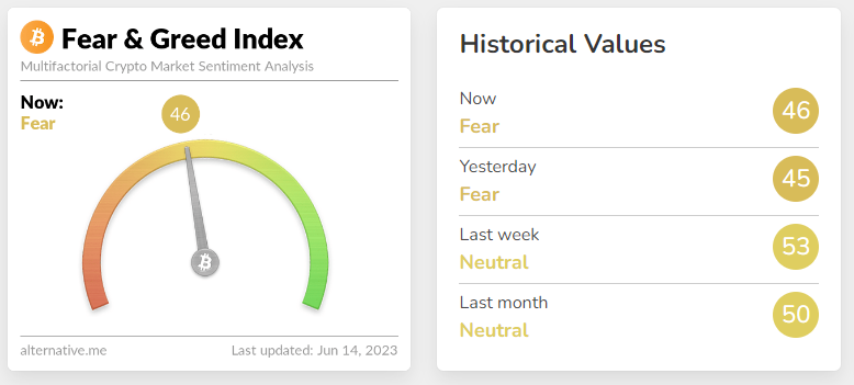 Dňa 6. júna sa index strachu a chamtivosti prepadol z hodnoty 53 na 44 bodov a odvtedy sa tiahne v zóne strachu. Od januára 2023 ale index zaznamenáva pomerne vyššie hodnoty v porovnaní s rokom 2022, keď sa nad 50 bodov dostal len v prvom kvartáli. Napriek tomu ale o pozitívnom sentimente nemôžeme hovoriť.