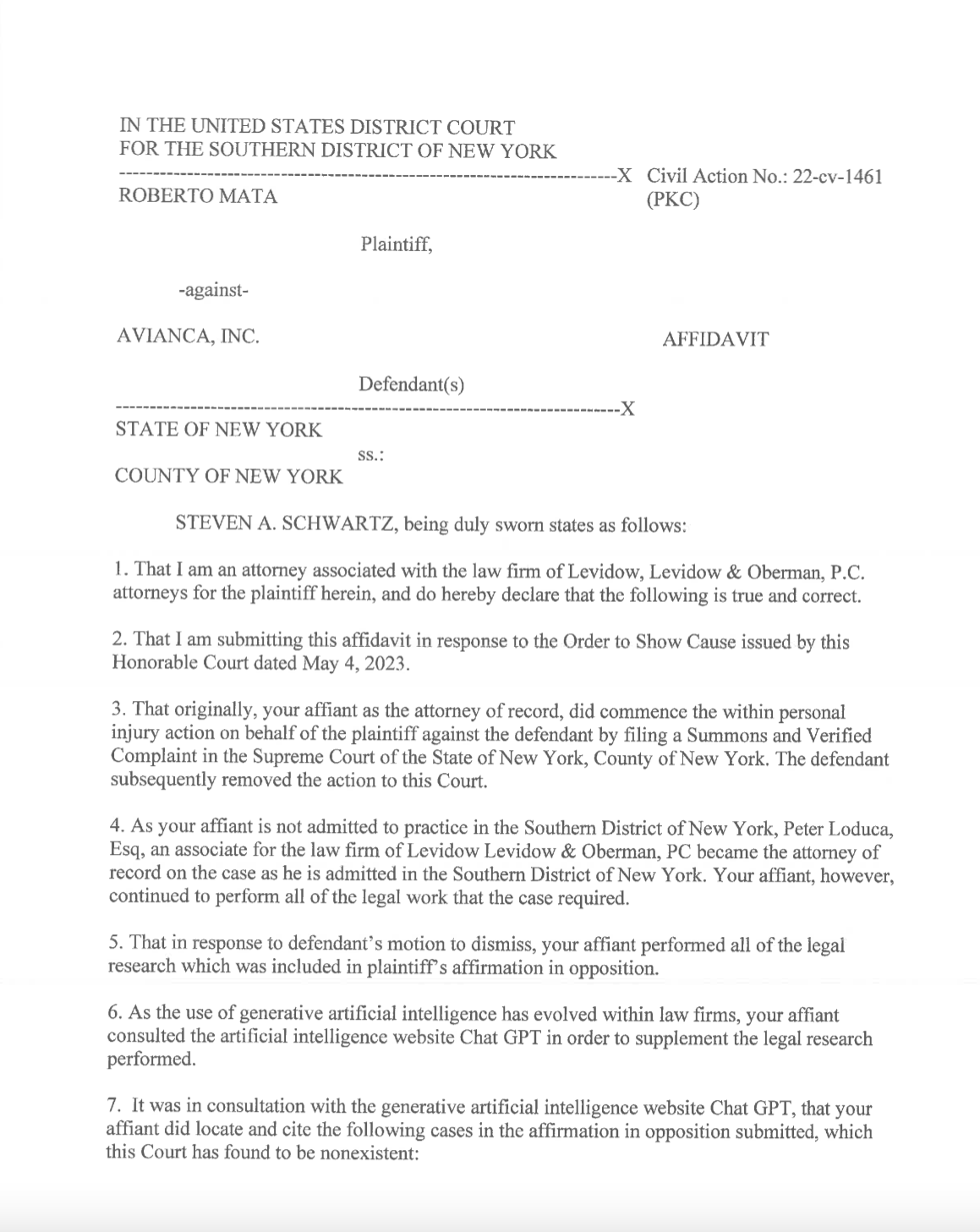 However, after a judge noticed inconsistencies and factual errors in the case documentation, Schwartz has now admitted to using ChatGPT for his legal research, according to a May 24 sworn affidavit.